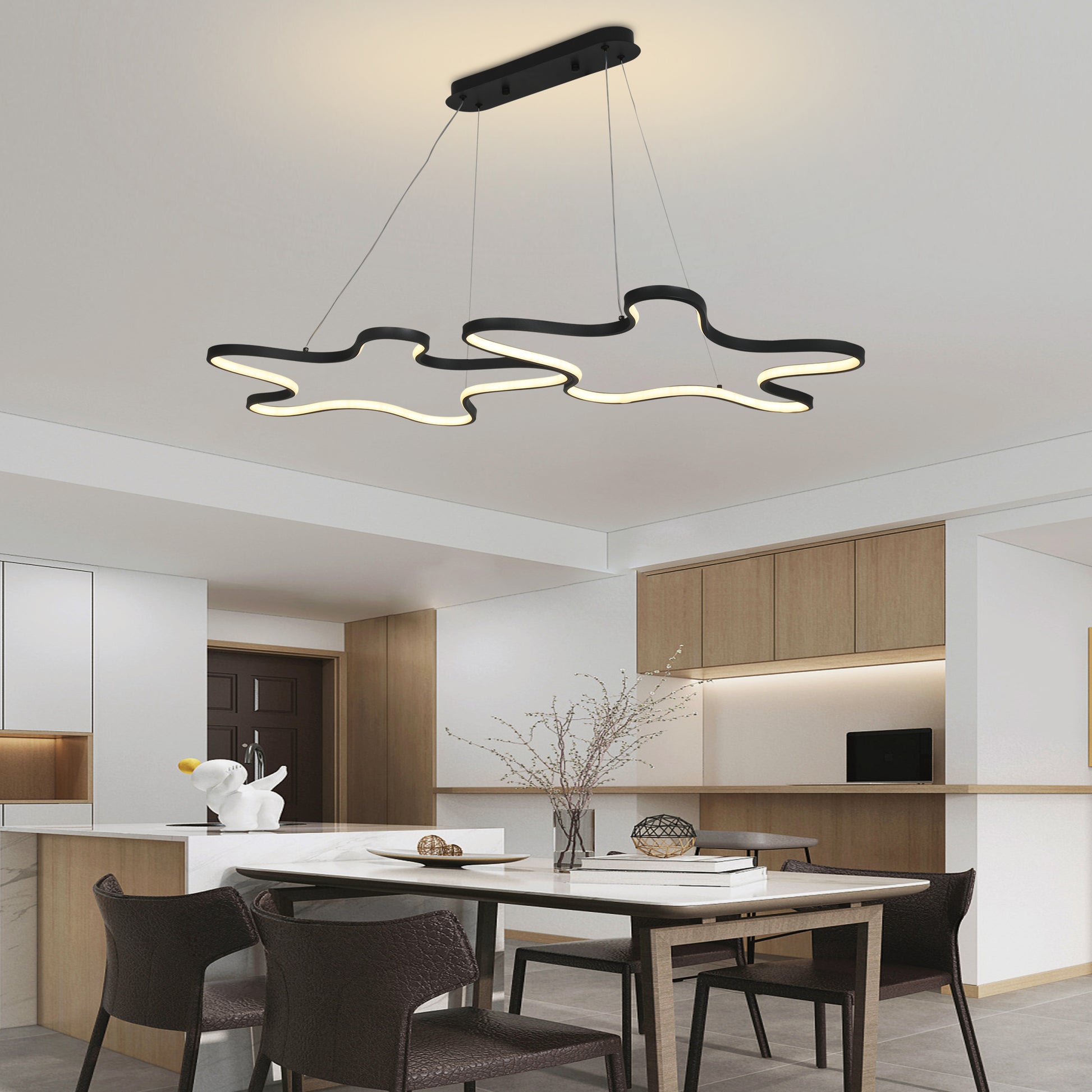 La lámpara colgante AKOYA / 9705 combina elegancia y modernidad con sus curvas en forma de estrella asimétrica, creando profundidad y llenando cualquier espacio de tu hogar con estilo. Con tecnología LED regulable, permite ajustar la intensidad y la temperatura de color para adaptar la iluminación a cada ambiente. Ideal como pieza central decorativa, la AKOYA / 9705 está disponible en acabados negro, dorado y cromo, ofreciendo una solución de iluminación funcional y sofisticada para cualquier habitación.