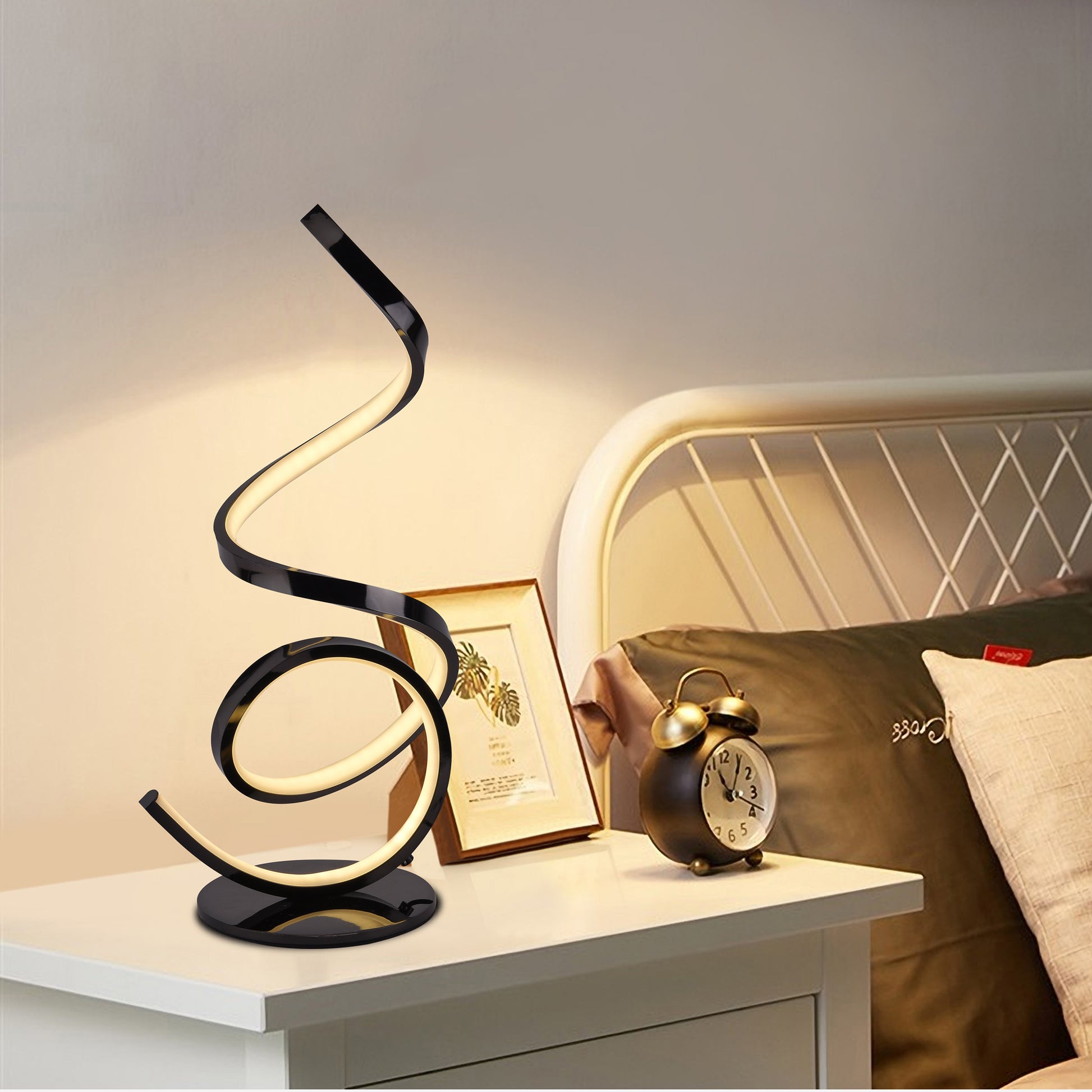 La lámpara de mesa ALESSA / TD415 combina diseño moderno y funcionalidad con figuras inspiradas en el arte contemporáneo, ofreciendo un toque elegante a cualquier espacio del hogar u oficina. Equipada con luces LED y regulador de intensidad, permite elegir entre luz cálida, neutra o blanca para adaptarse a distintas necesidades, mientras que su control alámbrico facilita encendido, apagado y ajuste desde la comodidad de tu asiento, convirtiéndola en un complemento versátil y sofisticado para mesas laterales, burós y otros muebles.