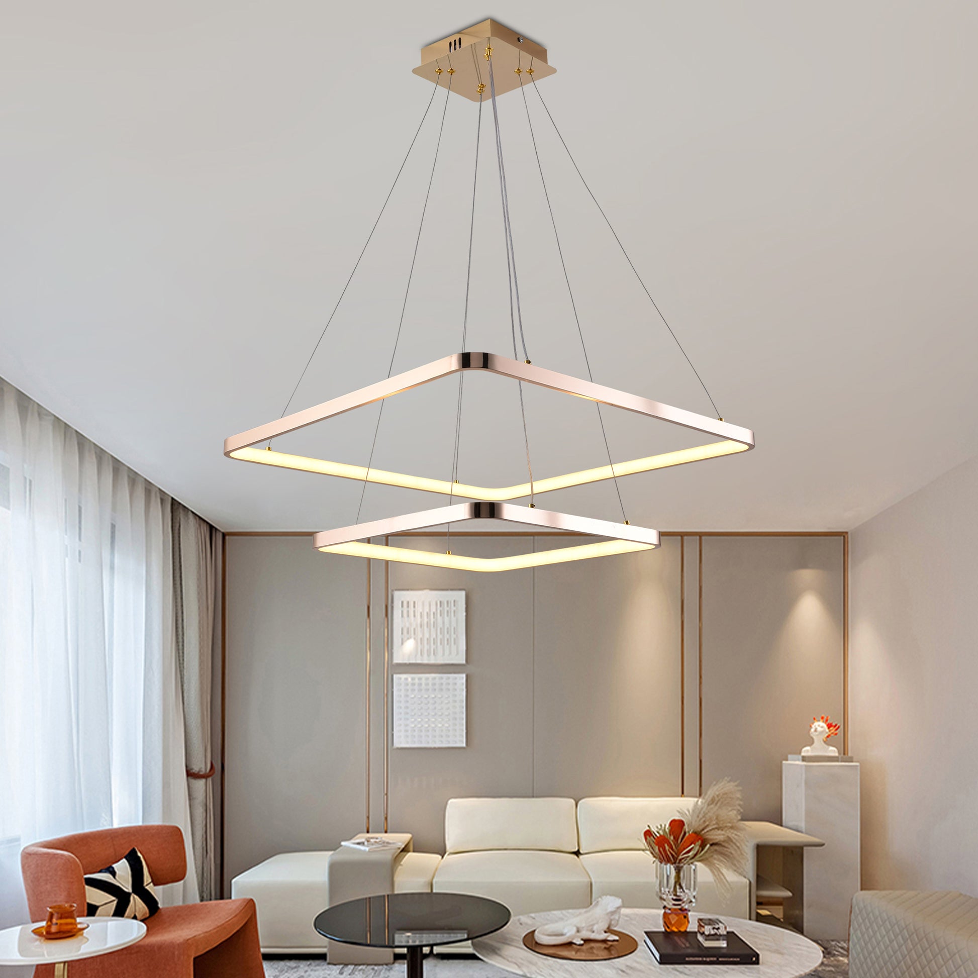 Castle es una lámpara colgante LED que reinventa el arte cubista mediante la iluminación. Su diseño incorpora cuadrados de aluminio suspendidos en acabados dorado y cromado cepillado, distribuidos en múltiples niveles y equipados con LED regulables de alta potencia. Gracias a sus tensores ajustables, permite configuraciones personalizadas, convirtiéndose en una escultura cinética luminosa que agrega movimiento y sofisticación a cualquier espacio.