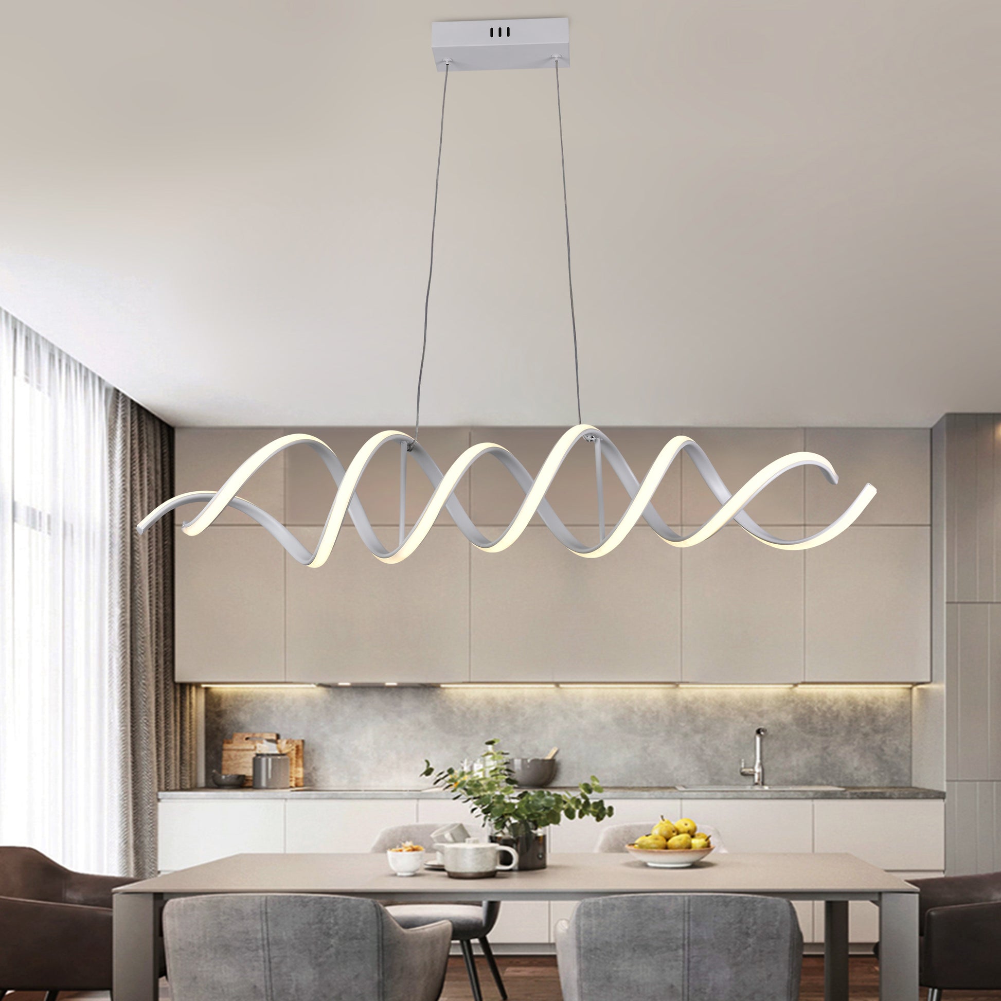 La lámpara colgante COSMOS / 6121 es un espectáculo de luz y diseño moderno. Su estructura de aros de aluminio entrelazados crea un vórtice dinámico y lineal, mientras que tiras de LED integradas dirigen la luz hacia el centro del espiral para un efecto visual impactante. Totalmente regulable en intensidad y temperatura de color mediante control remoto y app, COSMOS / 6121 combina arte y funcionalidad para transformar cualquier espacio.