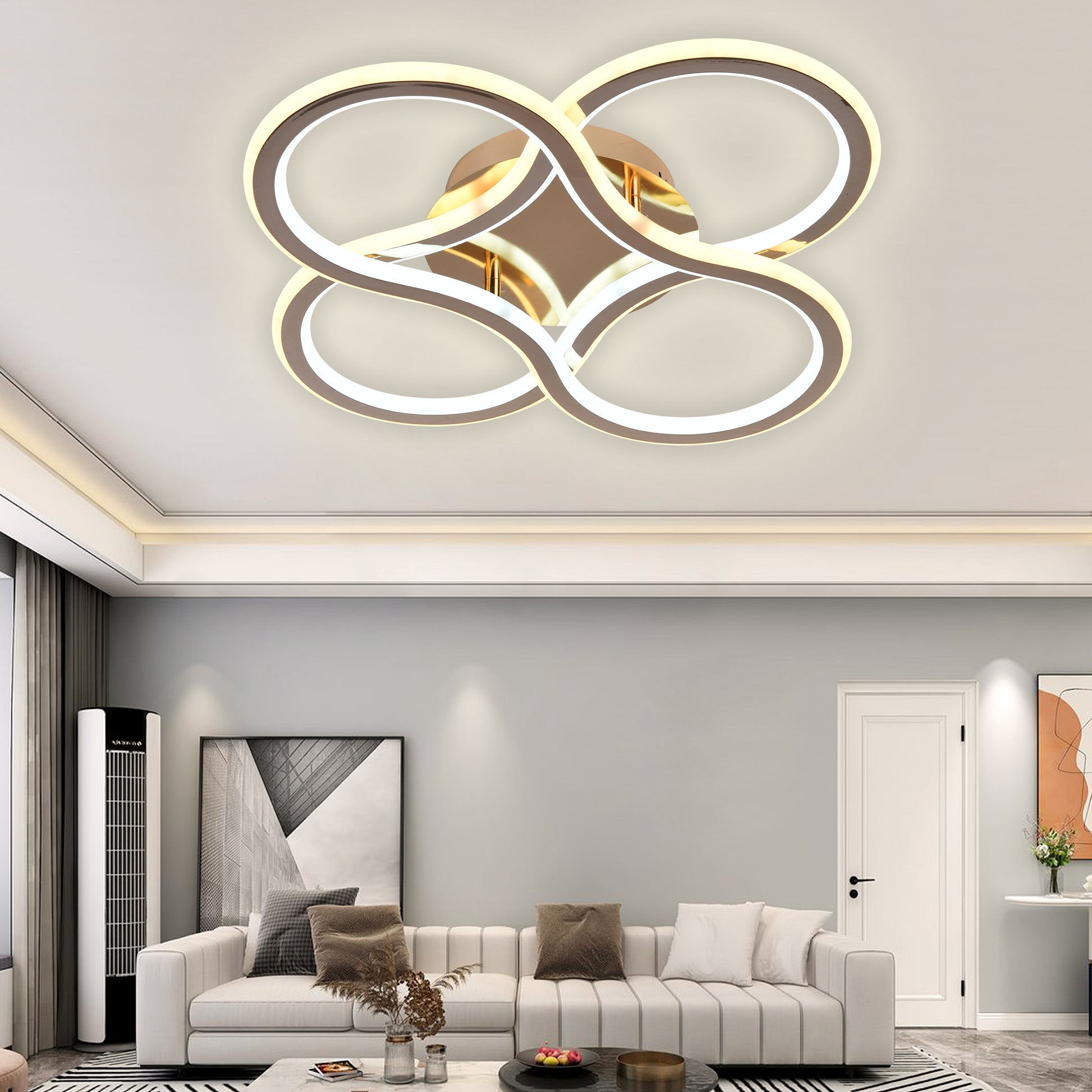 La lámpara de techo LED DEJA VU / 6174 combina lo legendario con lo contemporáneo, inspirándose en los tesoros incas, con un perfil de aluminio y doble difusor LED que emite una luz brillante y uniforme. Con control remoto, regulador de intensidad y tres temperaturas de luz, proyecta un resplandor radiante que realza cualquier espacio, aportando elegancia y sofisticación a la decoración del hogar.