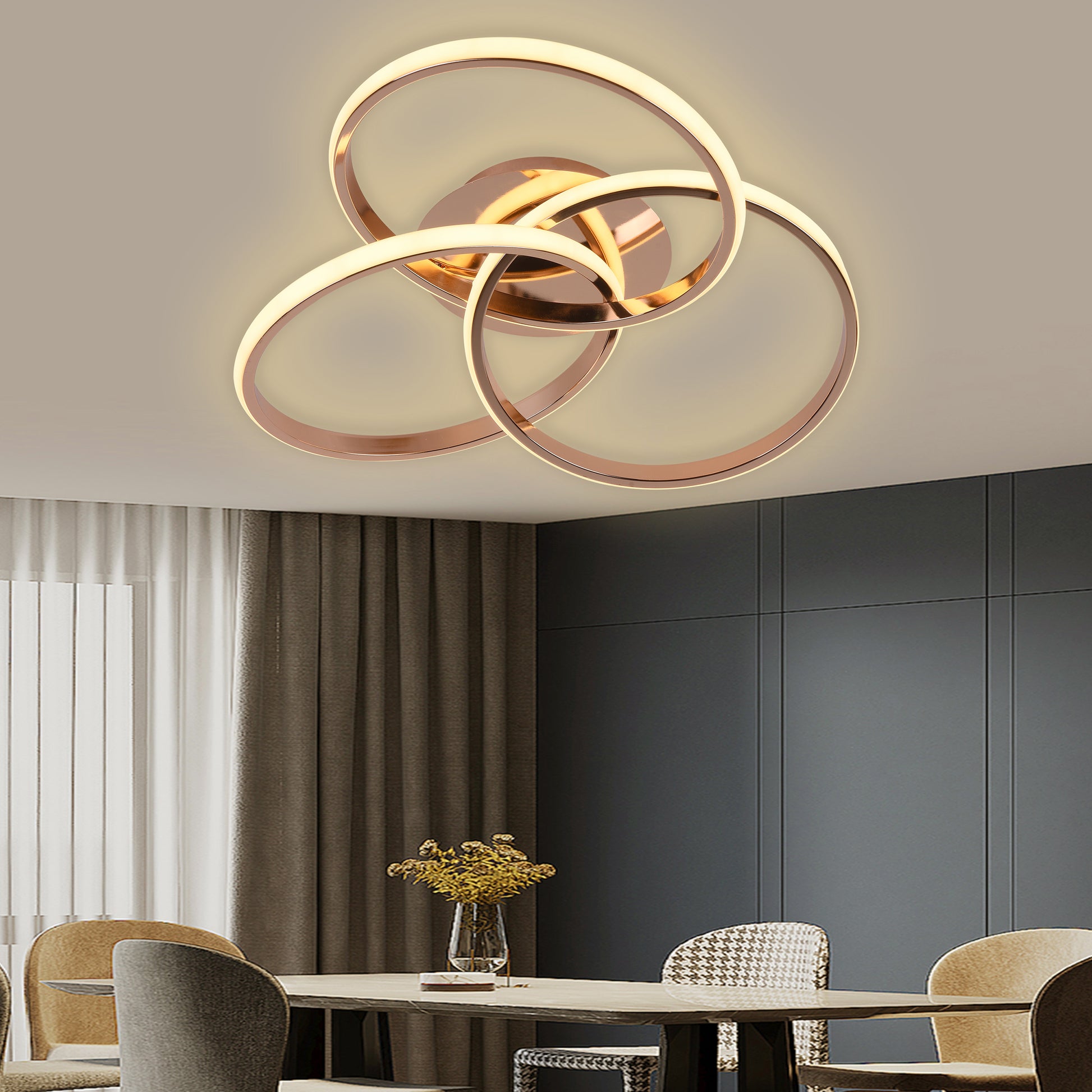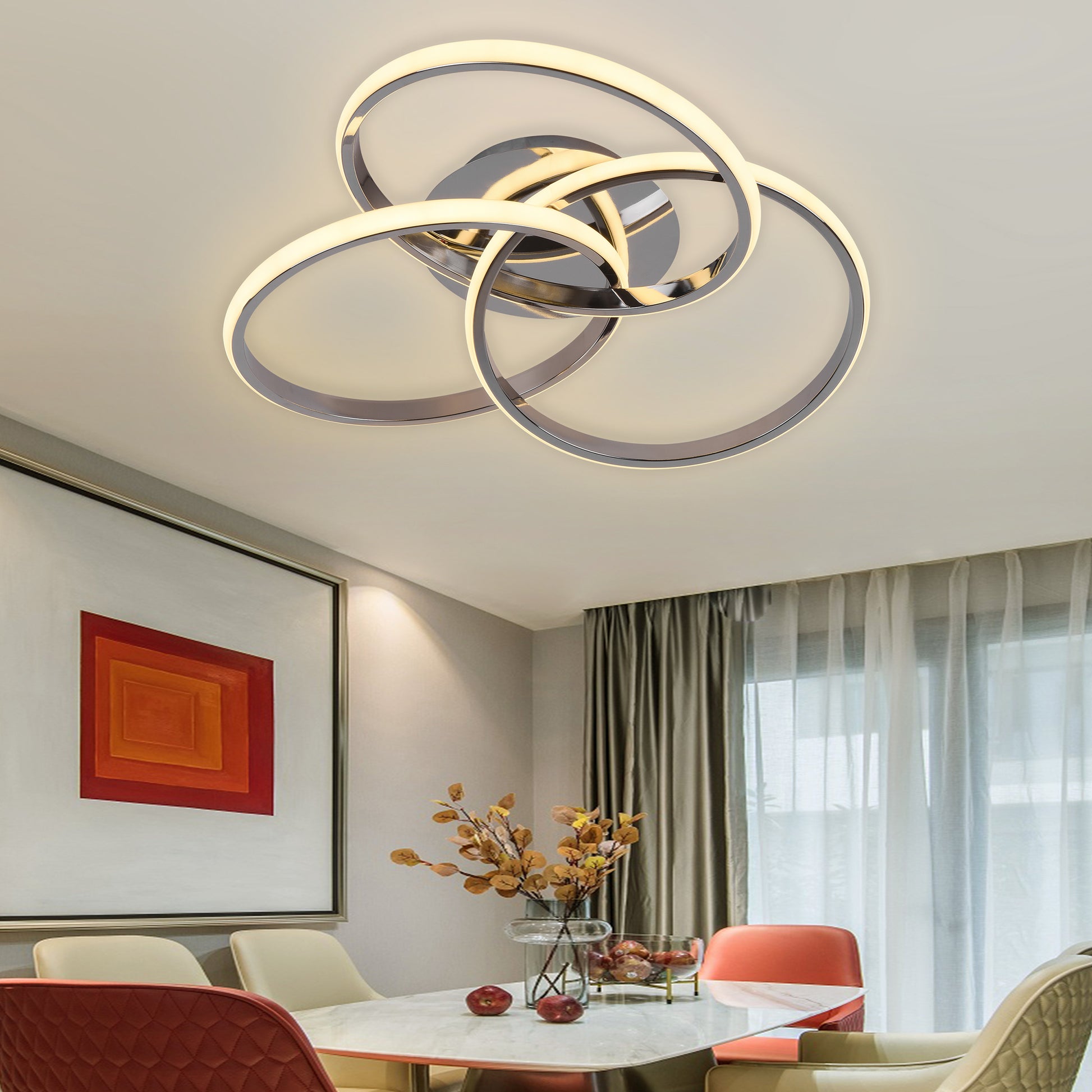 La lámpara de techo LED DOTH / 6694-3 combina estilo moderno y elegancia con tres anillos en acabado cromo y dorado pulido, sostenidos por una columna de aluminio que crea una caída suave. Con control remoto, regulador de intensidad y tres temperaturas de luz, ofrece una iluminación versátil y sofisticada, siendo un complemento ideal para aportar un toque contemporáneo a cualquier espacio del hogar.