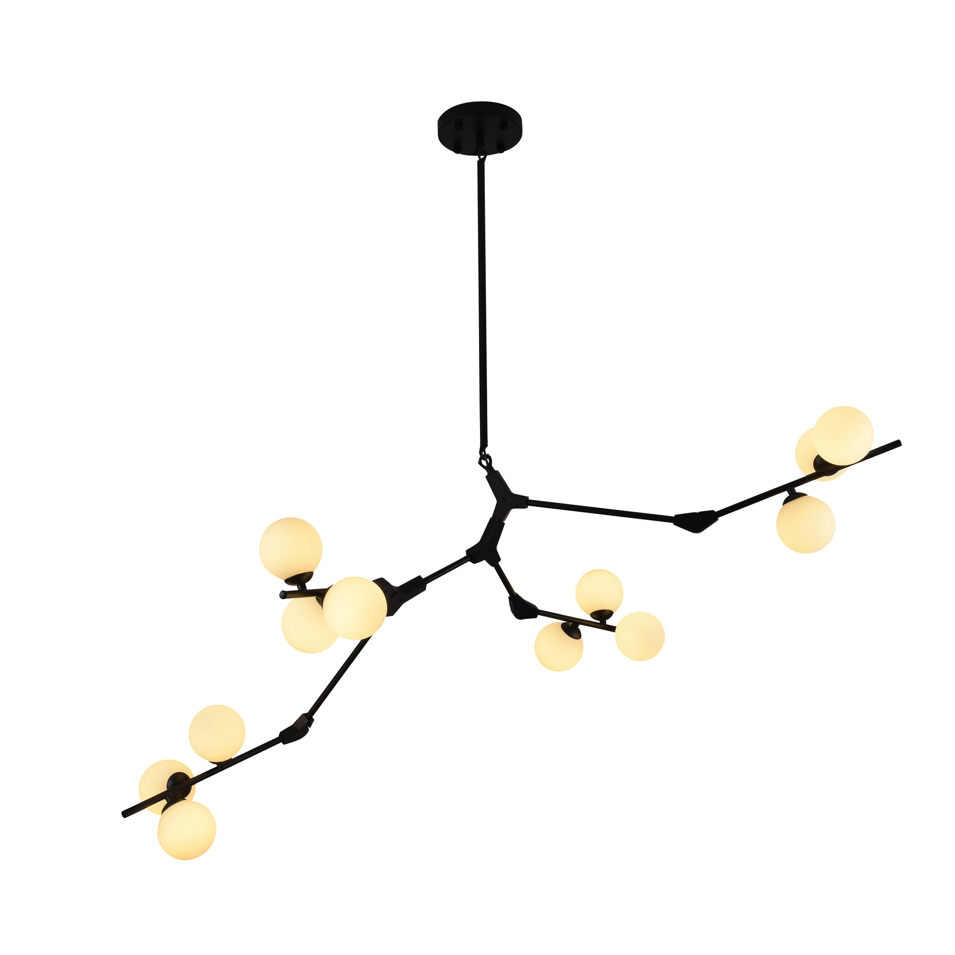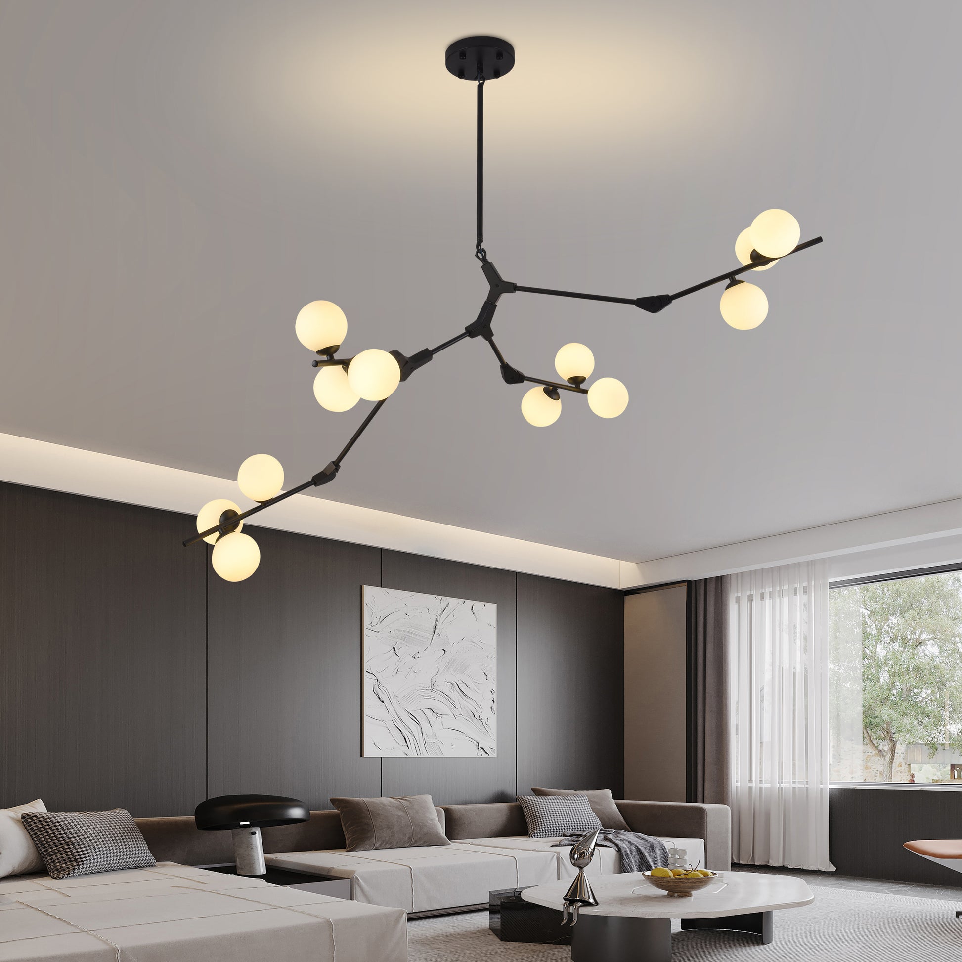 La lámpara colgante ECHO combina un diseño moderno con un toque de mediados de siglo, ofreciendo un aspecto espectacular y contemporáneo. Con 12 esferas de vidrio blanco opalino y acabado en negro mate, sus brazos ajustables en forma de ramas permiten crear composiciones únicas que se adaptan a cualquier espacio. El colgante incluye un dosel esférico ideal para techos abovedados, inclinados o tipo catedral, y una barra de 1.3 m que se puede ajustar para techos altos o bajos. ECHO es la elección perfecta para quienes buscan una pieza central llamativa y elegante en su sala, comedor o entrada.