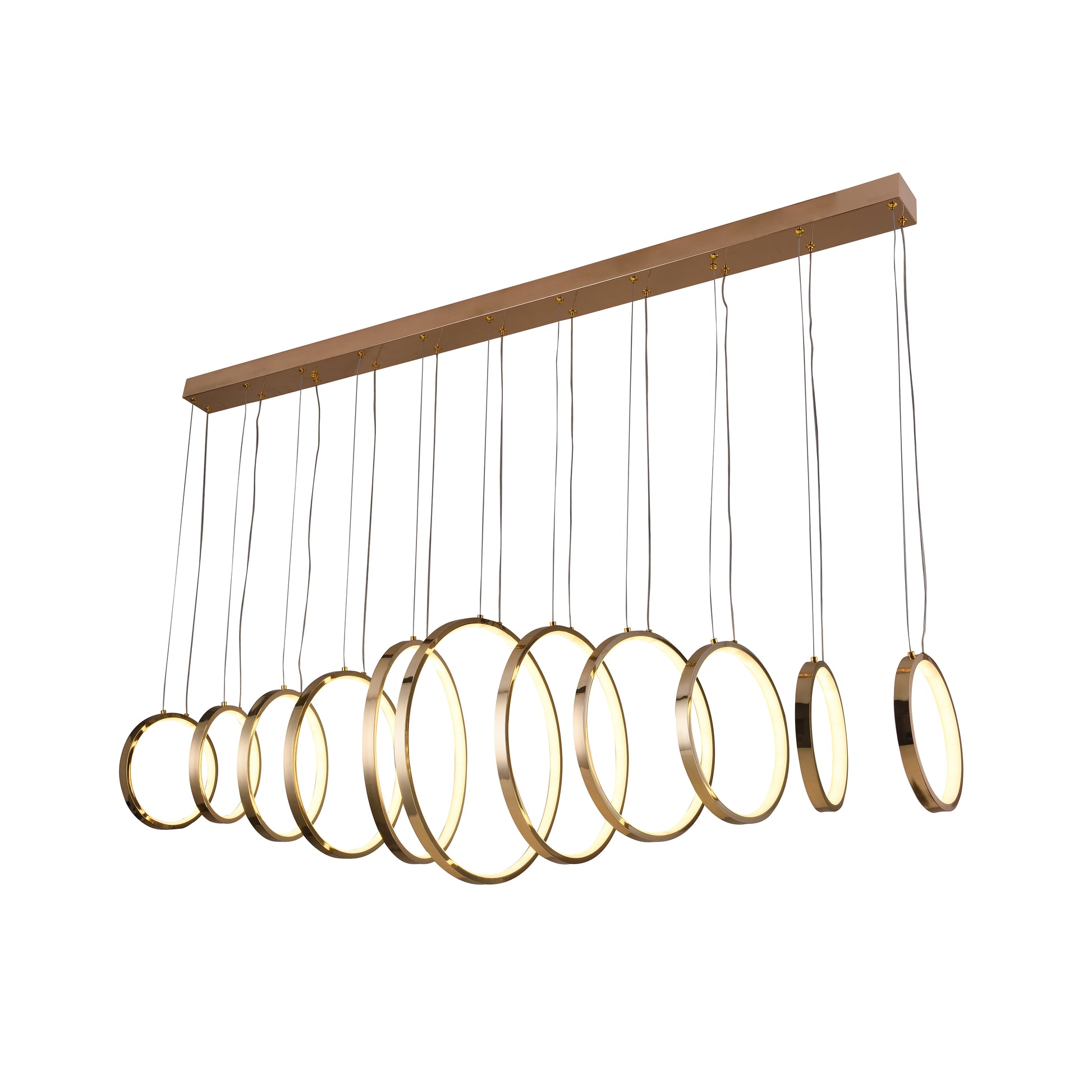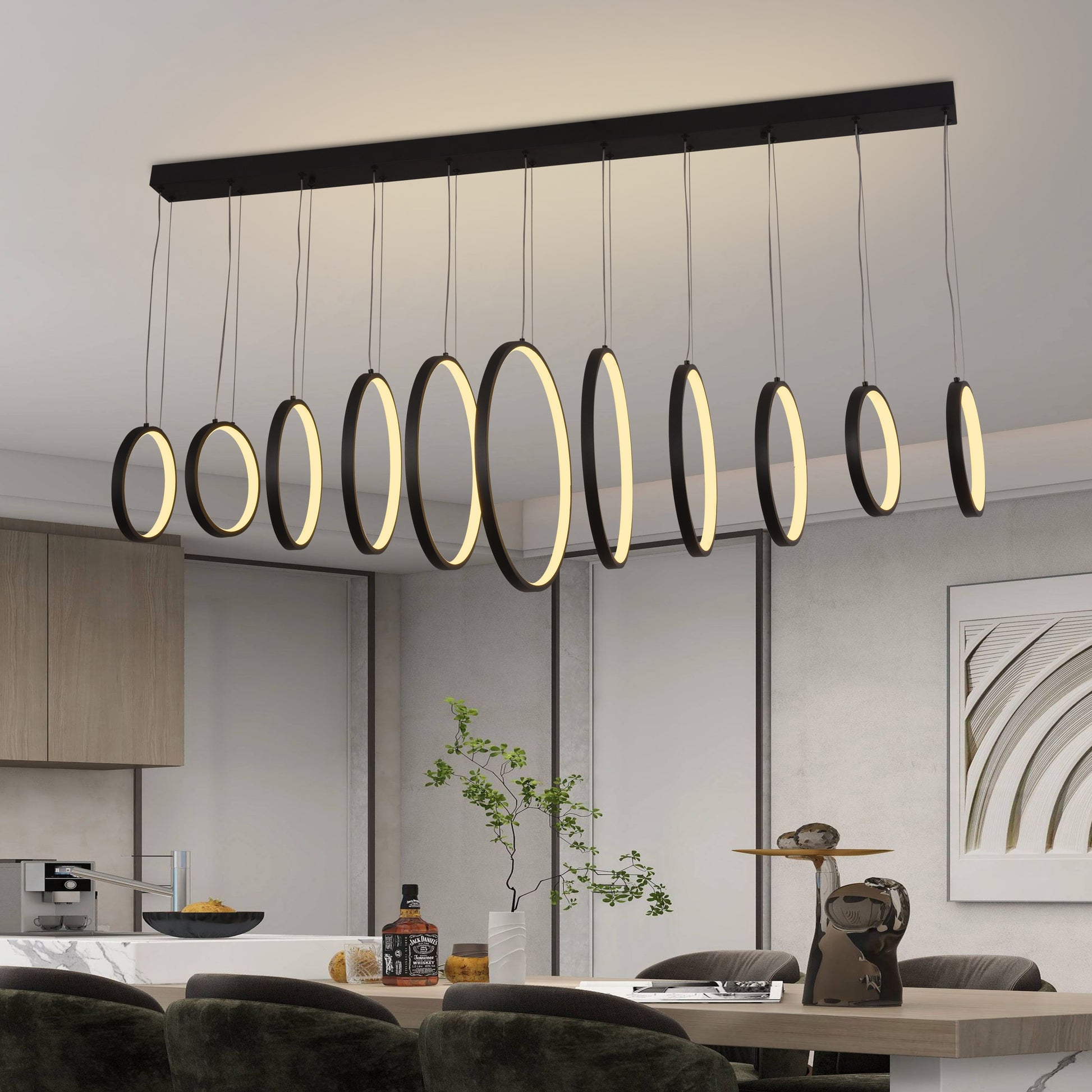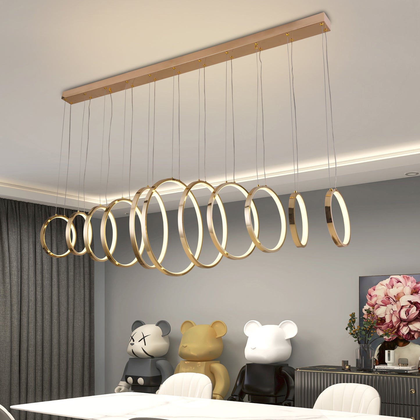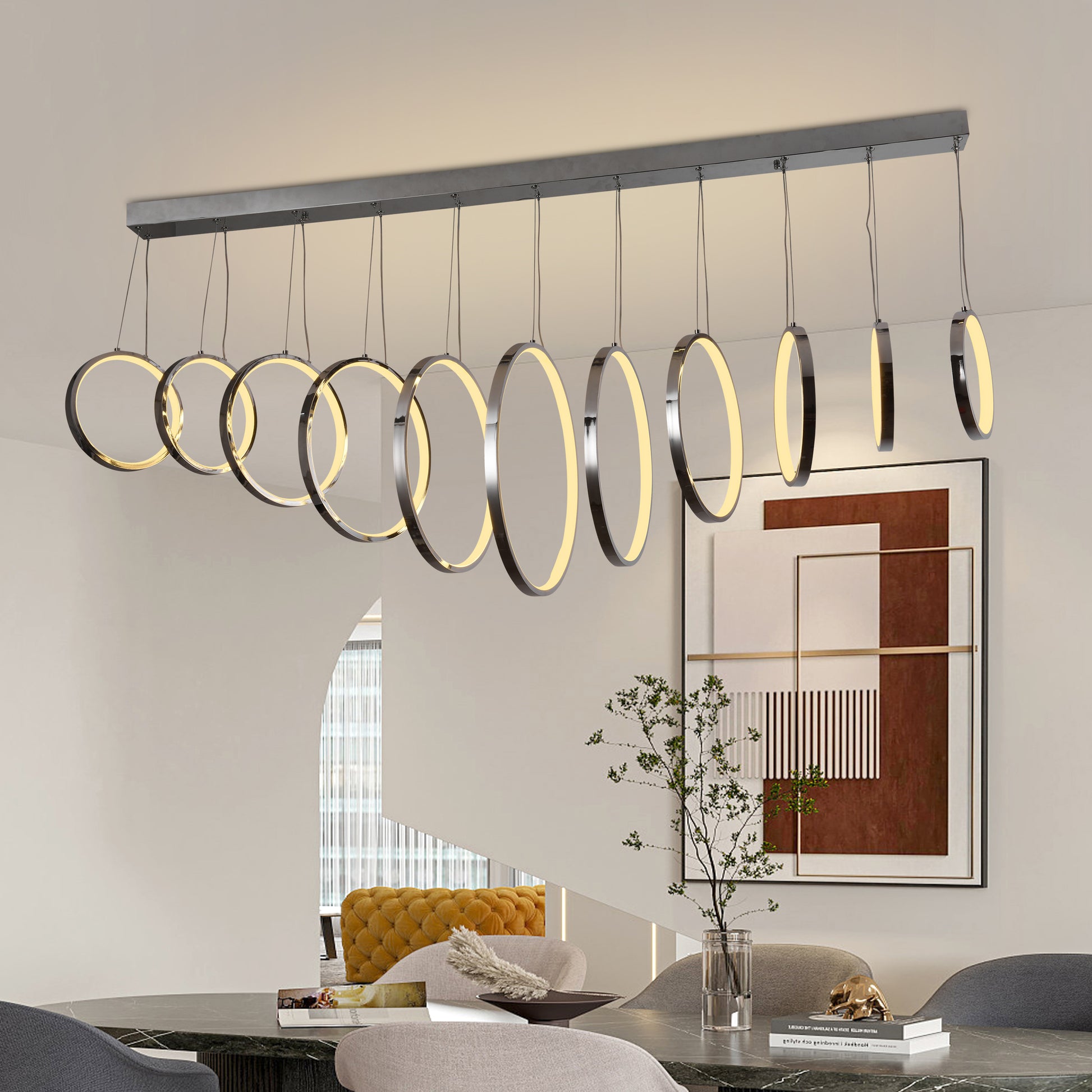 La lámpara colgante LED Grecia combina modernidad y exclusividad en un diseño impactante. Con once aros de aluminio que se integran en un cuerpo suspendido con elegancia, esta pieza se convierte en el centro de atención de cualquier espacio. Perfecta para estancias rectangulares o cuadradas, aporta un aire moderno y sofisticado que realza la decoración. Equipada con control remoto, permite ajustar la intensidad y elegir entre tres temperaturas de color, creando la atmósfera ideal en cada ocasión. Además, su altura regulable ofrece versatilidad para adaptarse a diferentes entornos y estilos.