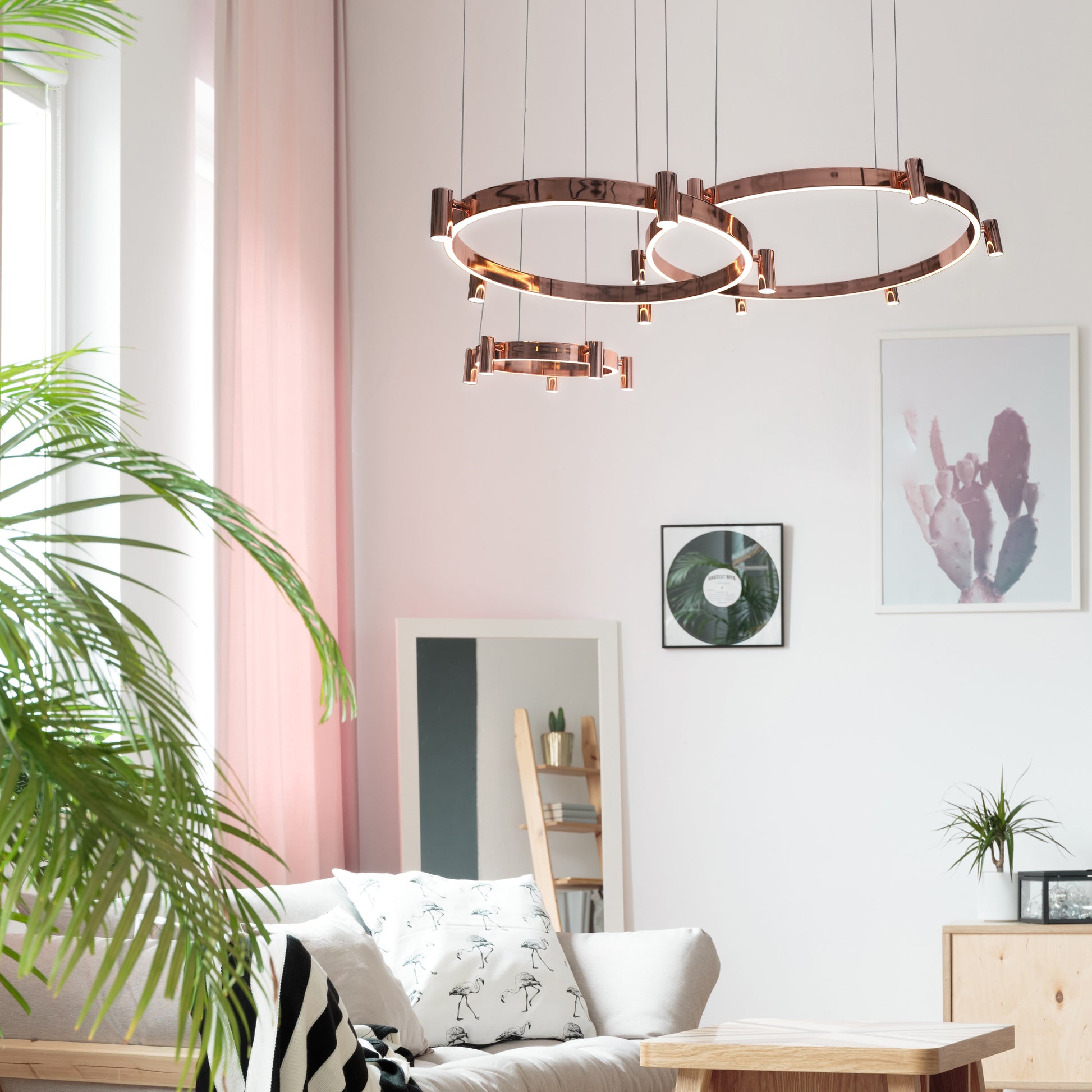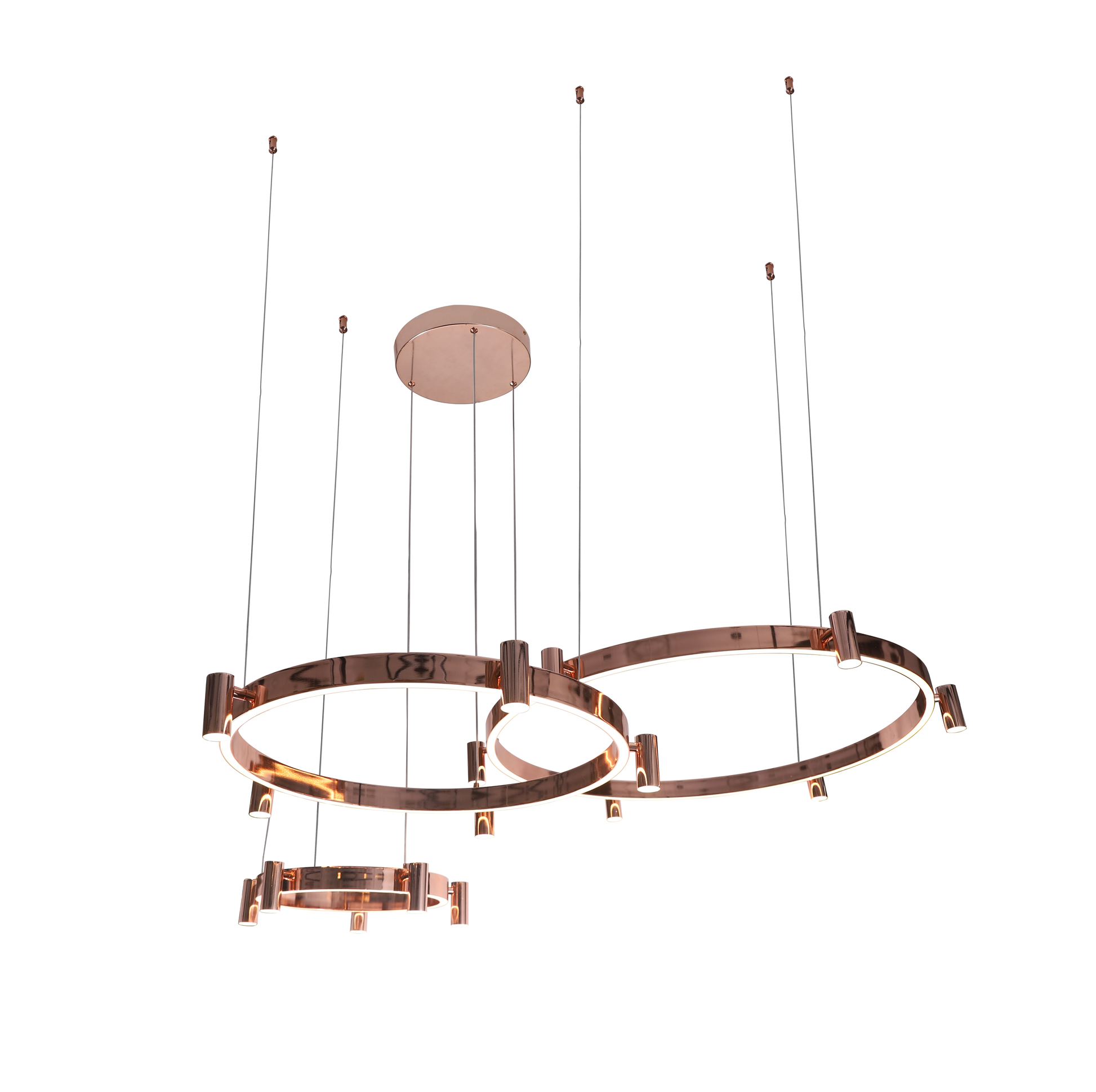 Un accesorio de iluminación decorativa que destaca por su calidad y diseño sofisticado. Compatible con la app TUYA Smart y asistentes virtuales como Alexa y Google Assistant, permite controlar la intensidad, encendido y apagado de forma práctica desde tu dispositivo móvil o por voz. Disponible en acabados negro mate y oro rosado, cuenta con 3 aros y 16 spots laterales inspirados en astros galácticos, aportando un toque de elegancia celestial a cualquier espacio. Incluye control remoto para personalizar la experiencia y ofrece luz blanca, cálida y neutra para transformar la atmósfera de tu hogar.