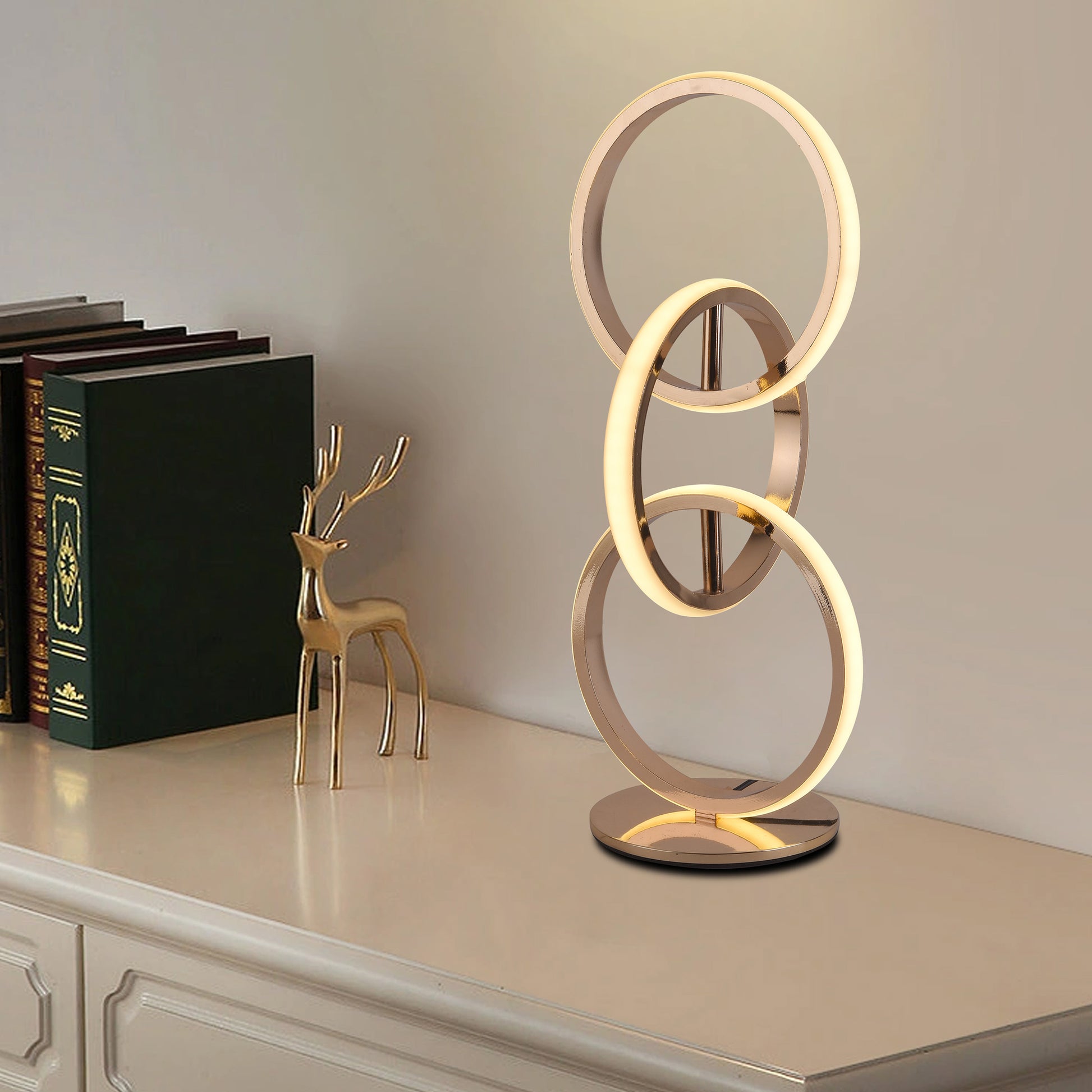 La lámpara de mesa LED LIAT / TD417 combina diseño elegante y funcionalidad con un acabado en oro rosa y una forma inspirada en la unión y el compromiso. Con luz cálida, neutra y blanca, regulador de intensidad y control alámbrico, permite ajustar la iluminación según las necesidades, convirtiéndose en un complemento versátil y sofisticado que aporta estilo y modernidad a cualquier espacio del hogar u oficina.