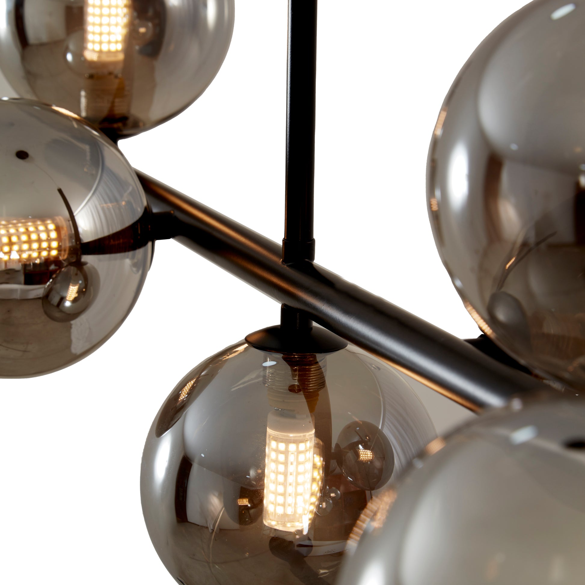 La lámpara colgante LUCA / 8215 se inspira en la elegancia de los tallos de rosas, con un acabado negro semi brillante y 9 esferas gris humo cromo degradado. Su diseño moderno y artesanal aporta sofisticación a cualquier espacio, creando un ambiente elegante y contemporáneo en tu hogar u oficina.