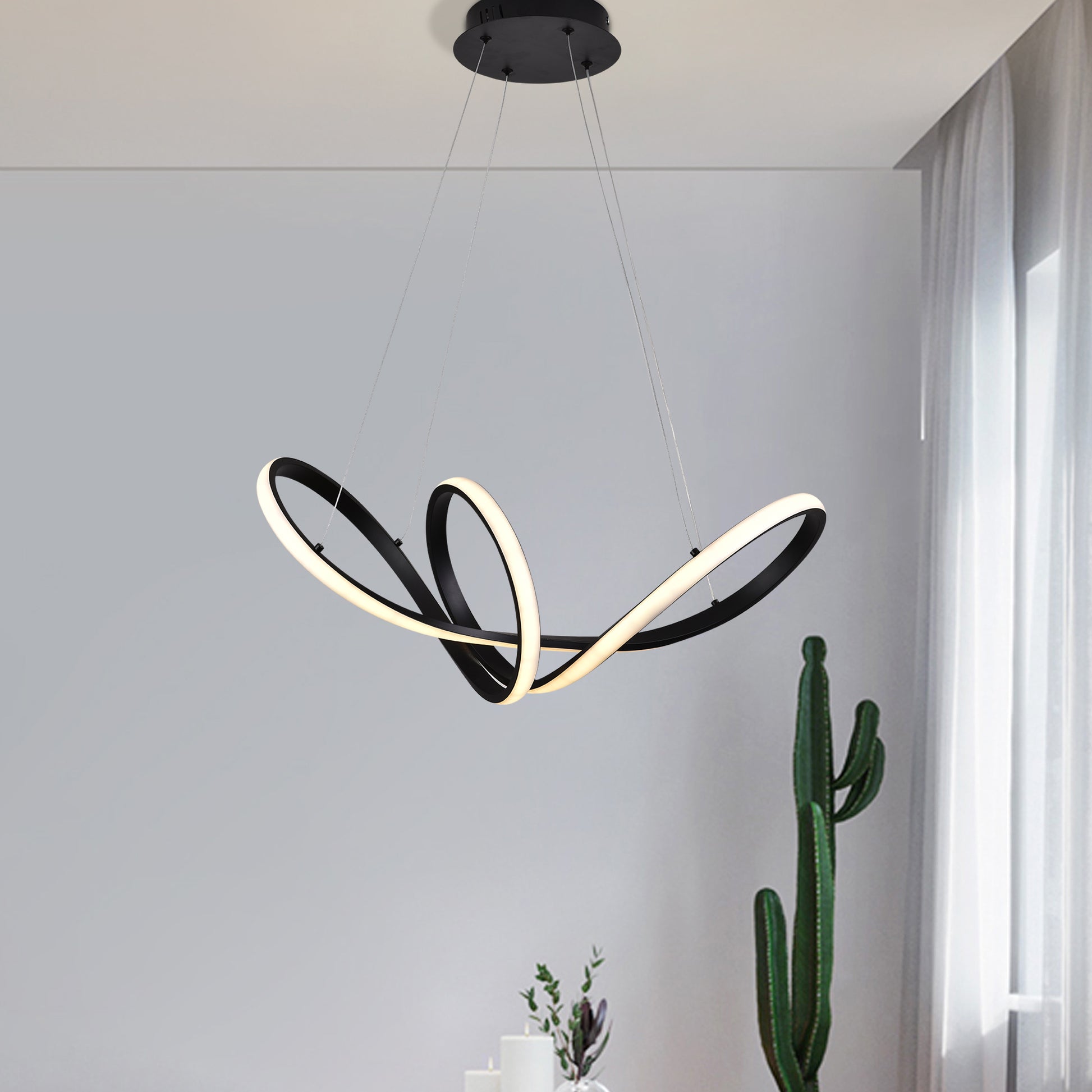 La lámpara colgante MÁNDALA / 6123 combina diseño abstracto y funcionalidad moderna. Sus perfiles de aluminio en acabados negro mate, dorado, cromado y blanco mate se cruzan de manera artística para formar una escultura luminosa única. Con LEDs regulables en intensidad y temperatura de color mediante control remoto y app, Mándala no solo ilumina, sino que también se convierte en el punto focal de cualquier espacio contemporáneo.