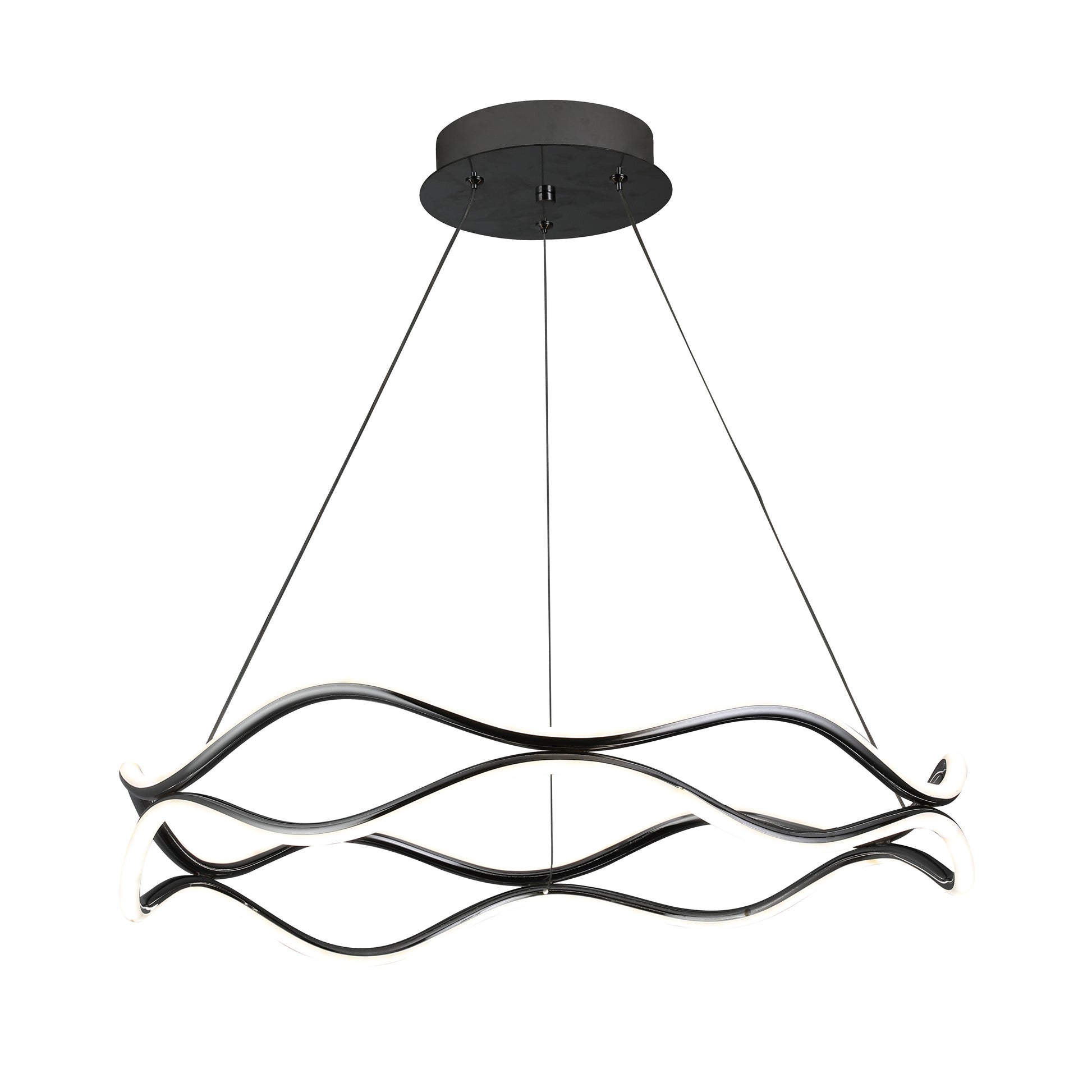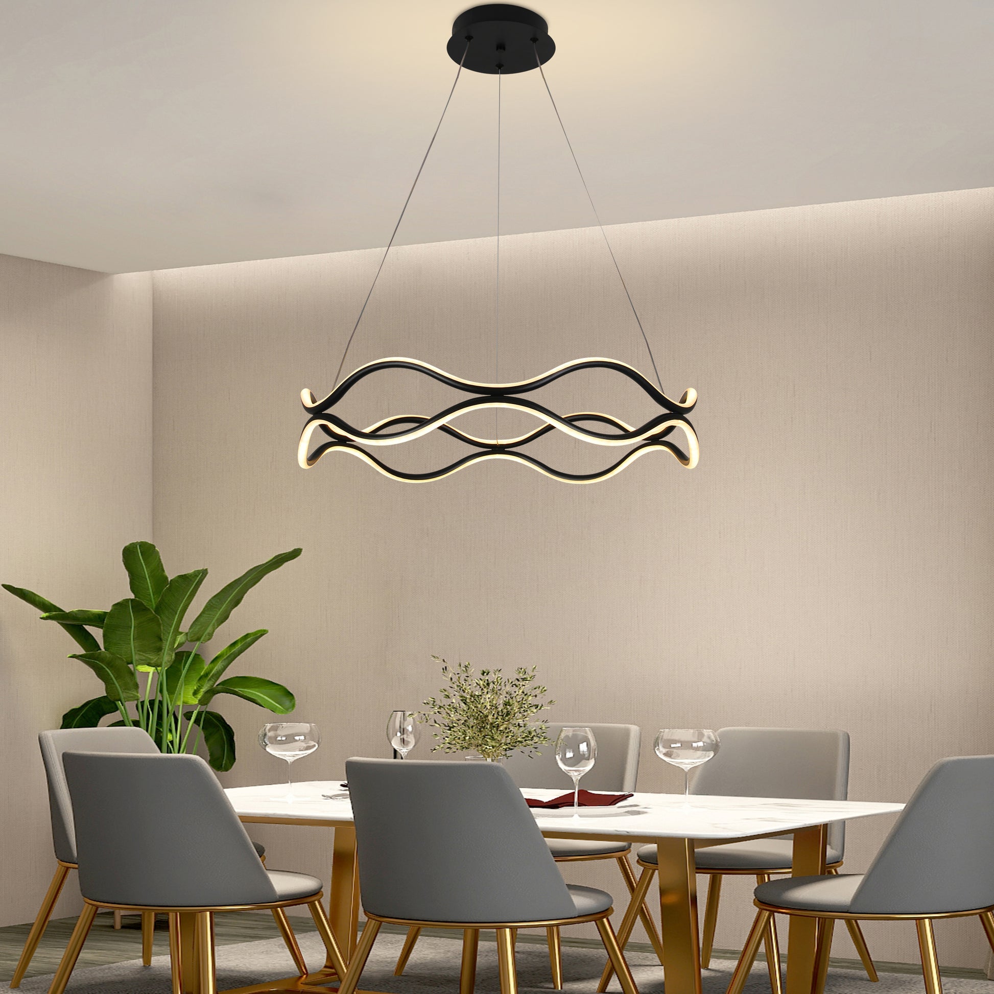 El candelabro MARA combina diseño contemporáneo y funcionalidad en una forma de eslabones que se retuercen como una obra de arte. Suspendido por un dosel cilíndrico con tensores ajustables, integra módulos LED de alta eficiencia con control remoto para regular intensidad y elegir entre 3 cambios de luz. Disponible en acabados negro con difusor de sílica o dorado elegante, es ideal para destacar en la cocina, comedor, sala, vestíbulo o estudio.