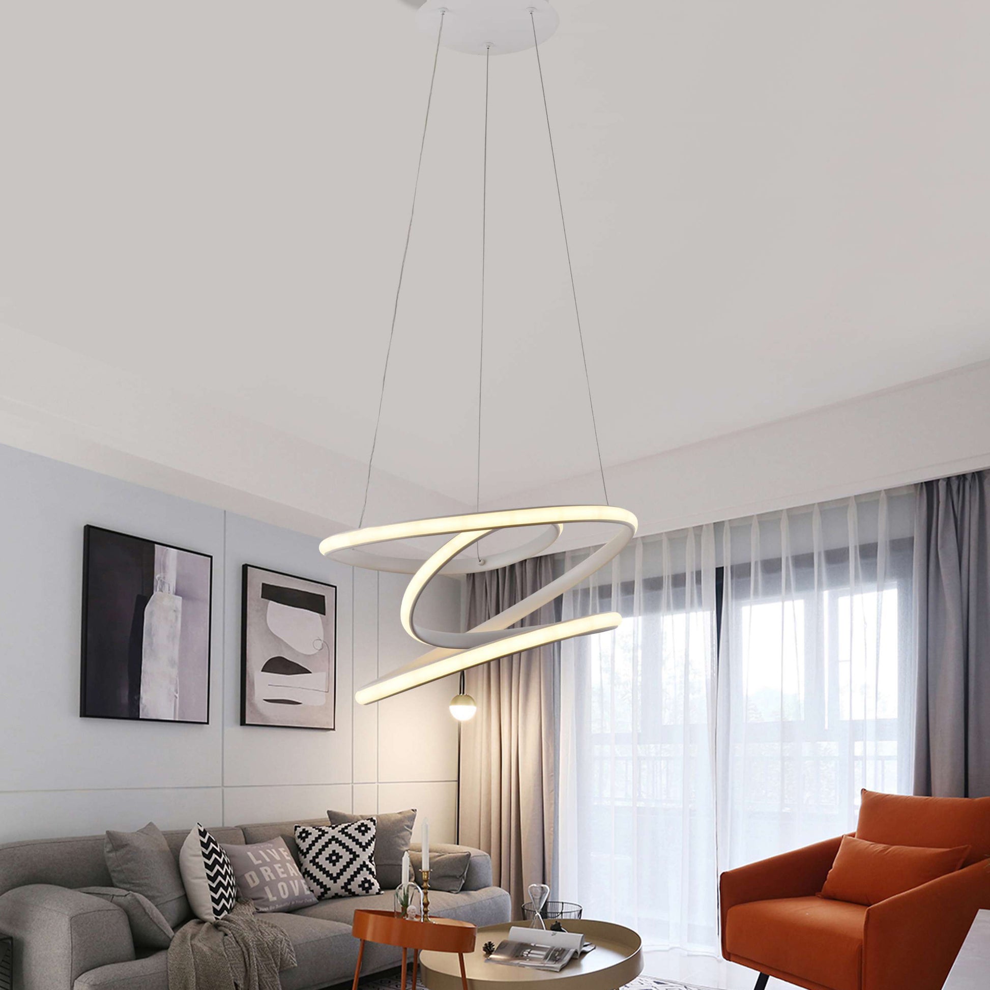 La lámpara colgante MIRAGE / 6124 destaca por su diseño en espiral con caída circular, creando un efecto visual elegante y sofisticado. Fabricada en perfil de aluminio con LEDs integrados, distribuye la luz de manera uniforme en todas las direcciones. Regulable en intensidad y temperatura de color mediante control remoto y app, Mirage es la opción ideal para quienes buscan una pieza exclusiva que combine arte y funcionalidad en su espacio.