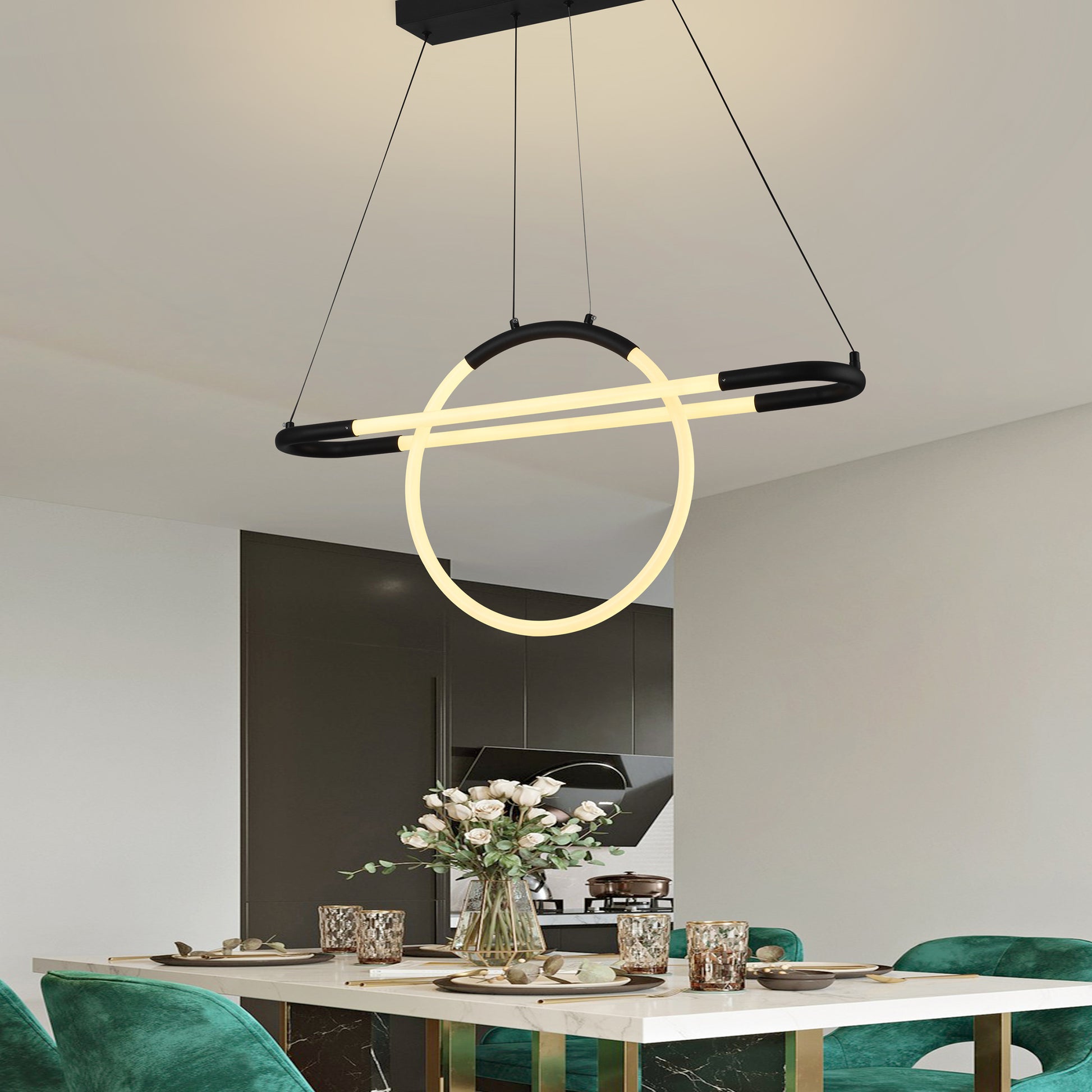 Omega es un candelabro colgante LED de diseño moderno y sofisticado, que destaca por su aro envuelto en un cinturón con caída natural, creando una forma original y elegante. La luz se distribuye de manera uniforme en todas las direcciones y es completamente regulable en intensidad y temperatura de color mediante control remoto, convirtiéndolo en una pieza central versátil y decorativa para cualquier espacio.