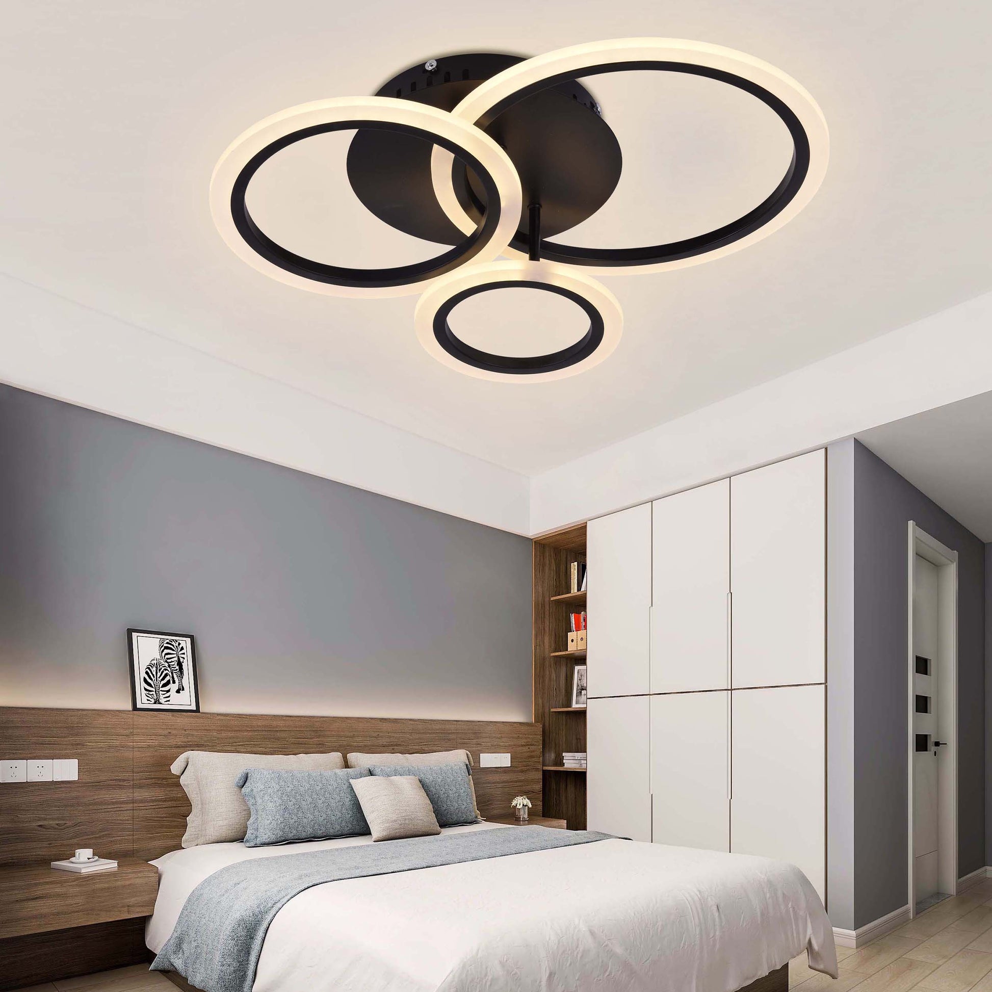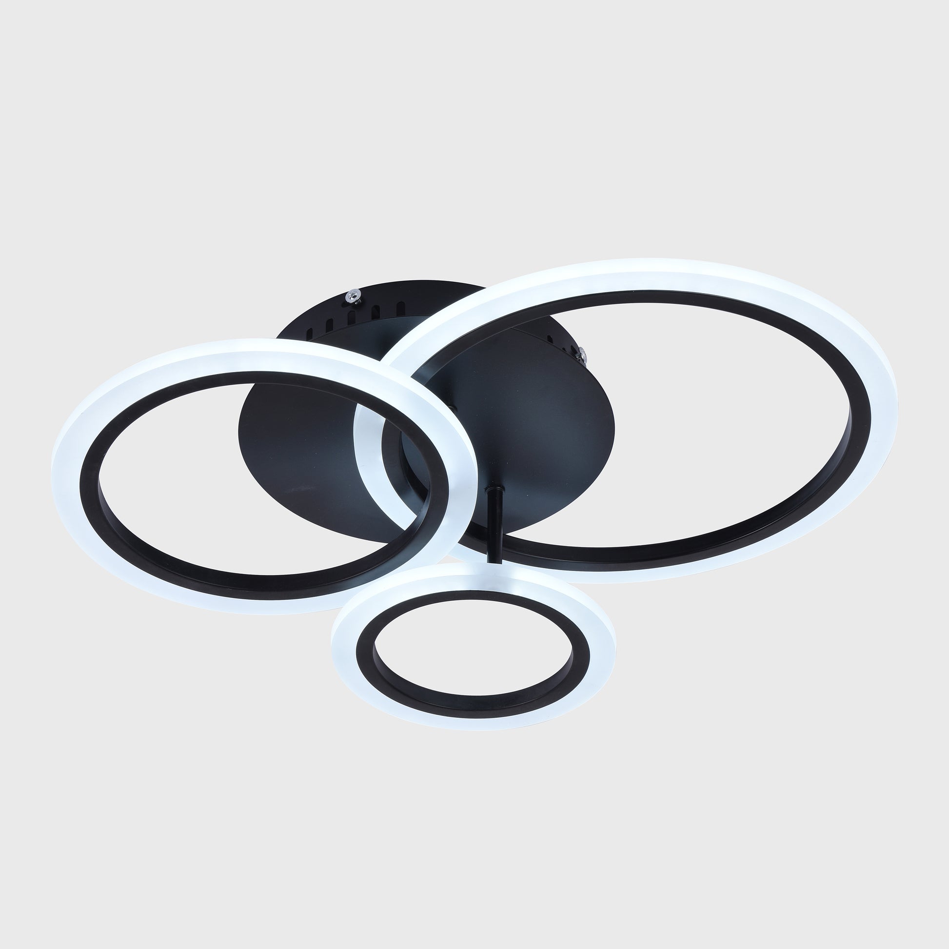 La lámpara de techo LED ONDAS / 6196 combina diseño moderno y sofisticación con anillos de distintos tamaños en acabados negro y blanco mate, sostenidos por una columna de aluminio que crea una caída suave. Con control remoto, regulador de intensidad y tres temperaturas de luz, ofrece una iluminación versátil y elegante, convirtiéndose en un complemento contemporáneo ideal para cualquier espacio del hogar.