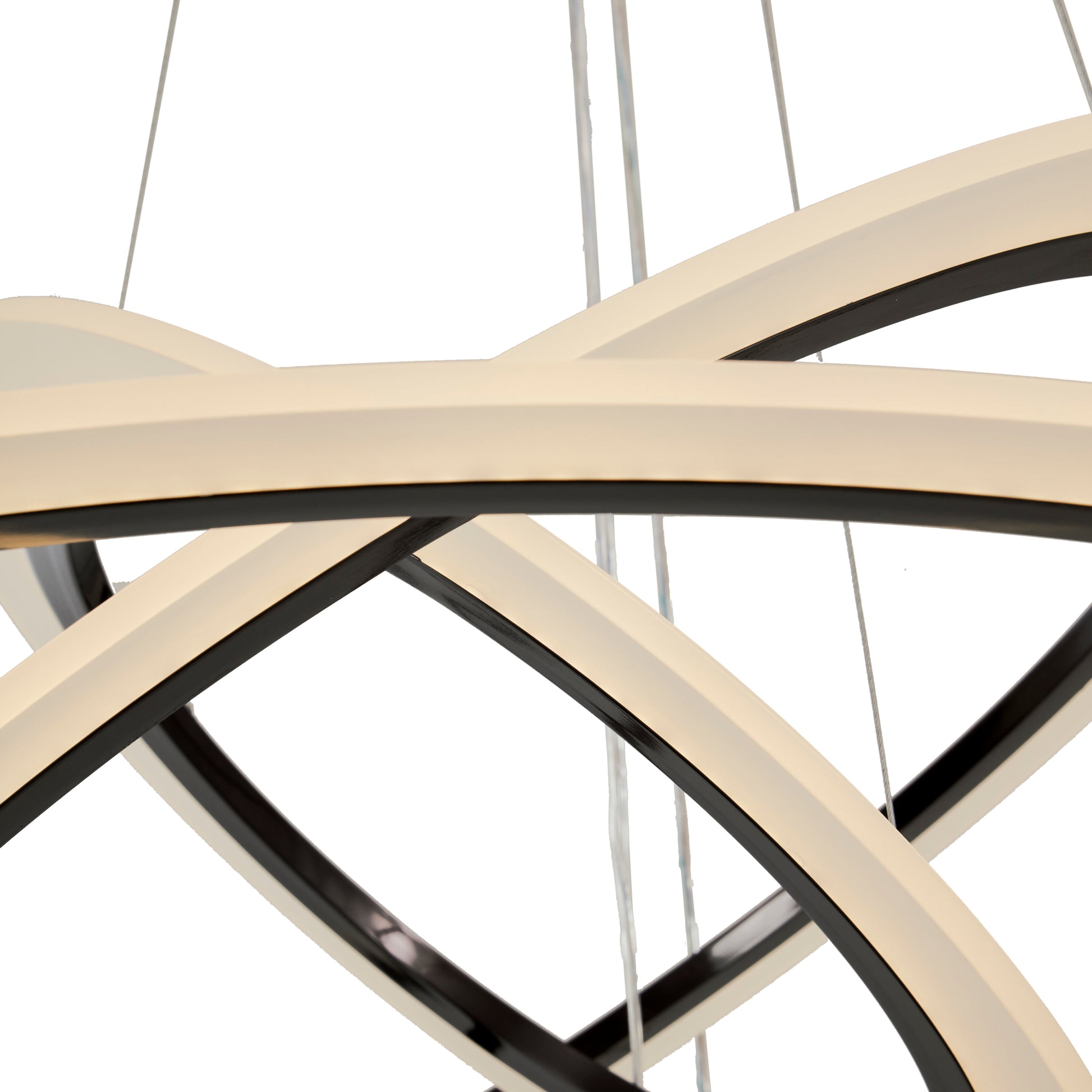 La lámpara ORBIT / 1107 se inspira en los anillos de Saturno, con 3 aros ajustables que permiten crear figuras y efectos lumínicos únicos. Con acabado cromo negro y acrílico mate, ofrece luz blanca, cálida o neutra regulable, control remoto y función de luz nocturna, aportando modernidad y versatilidad a cualquier espacio.