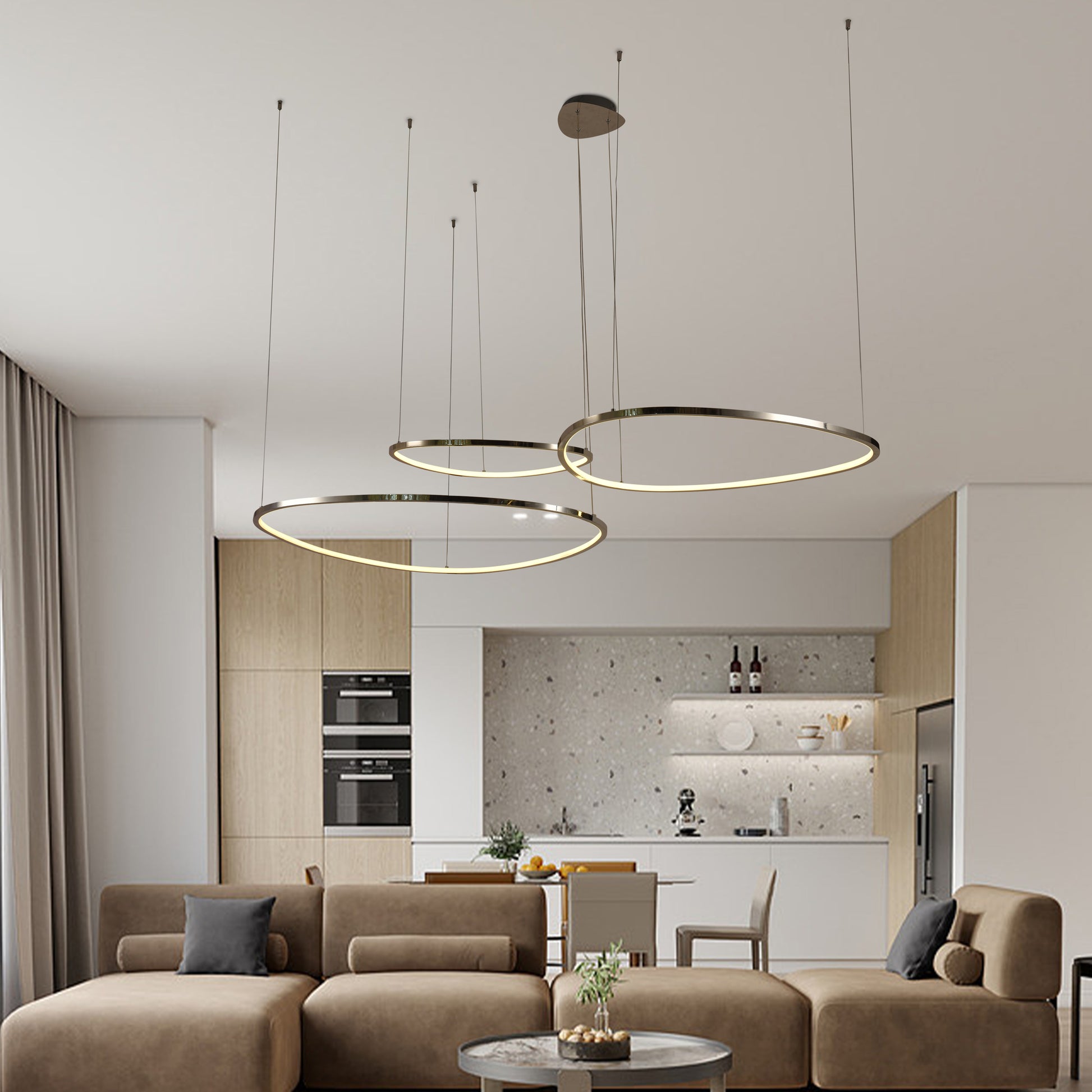 Una lámpara suspendida de doble altura que combina elegancia y modernidad en un acabado cromo brillante. Sus 3 aros semi ondulados permiten una disposición versátil, creando figuras únicas y aportando un toque artístico al espacio. Compatible con la app Tuya Smart y asistentes virtuales como Alexa y Google Assistant, permite un control práctico desde el móvil o por voz. Incluye control remoto para ajustar la intensidad y el tono de la luz —blanca, cálida o neutra— adaptándose a cualquier ocasión. La PEARL / LDD8015 es ideal para quienes buscan estilo, sofisticación y funcionalidad en iluminación decorativa.