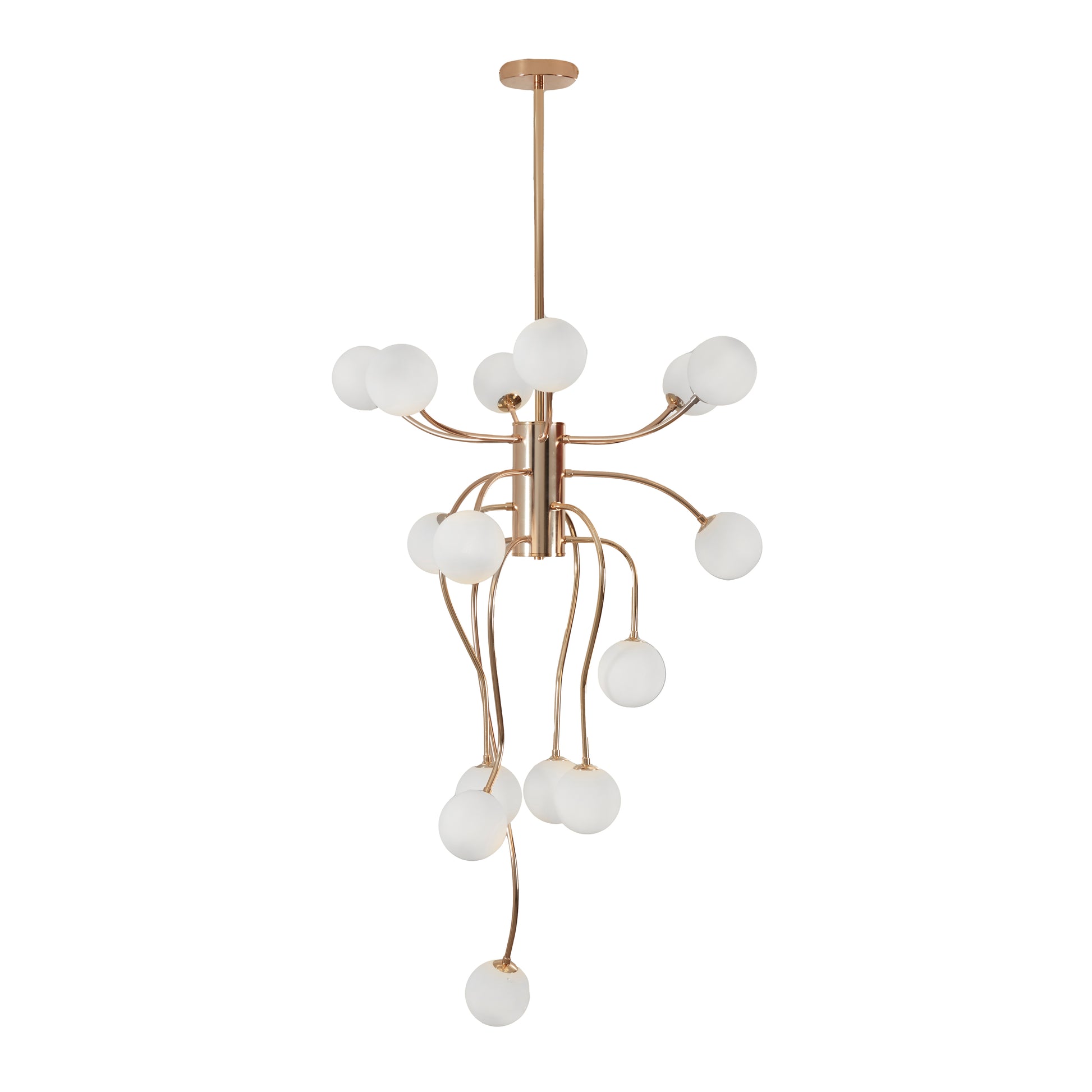 El candelabro PEKAH / 8147 combina elegancia y sofisticación con inspiración en esculturas romanas. Sus brazos largos en acabado oro francés y 15 esferas blancas opalinas crean una iluminación suave y acogedora, aportando un toque de lujo a cualquier espacio. Fabricado con materiales de alta calidad, es perfecto para realzar la decoración de interiores con estilo y distinción.