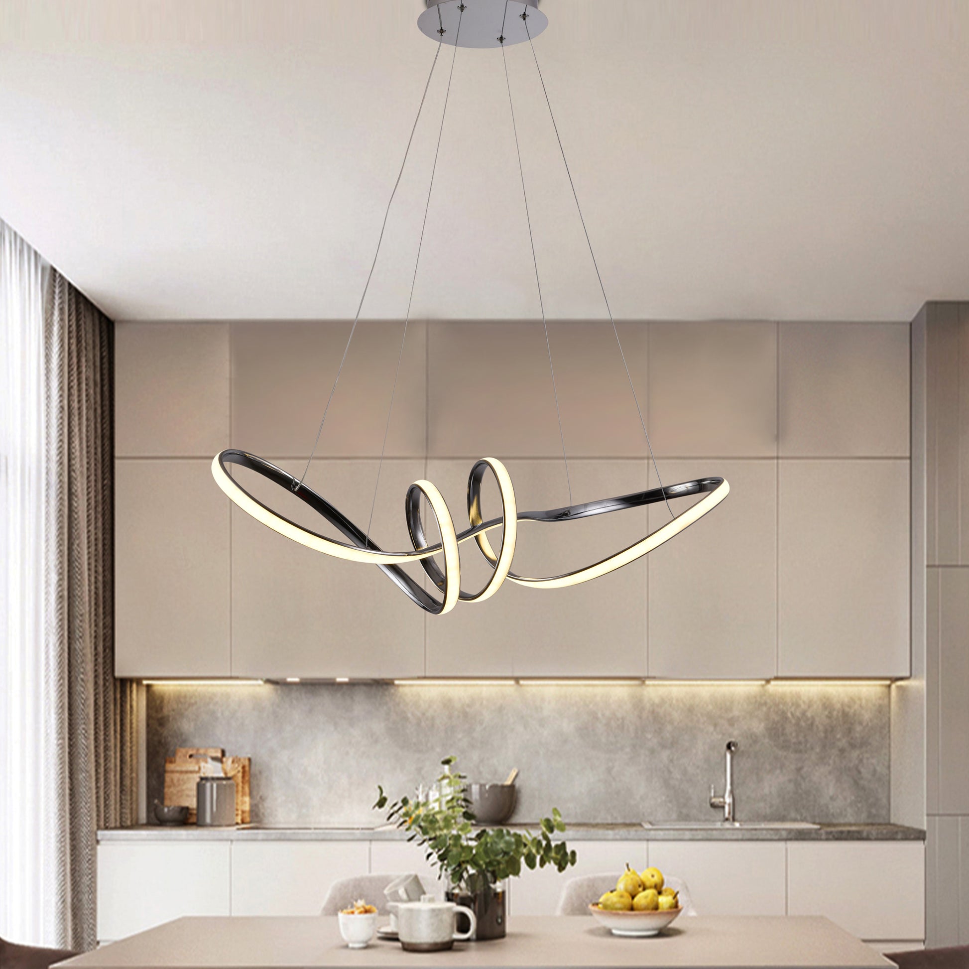 El colgante RIO / 6139 destaca por su diseño en patrón de remolino, que aporta dinamismo y un aire contemporáneo a cualquier estancia. Su estructura de aluminio con LEDs integrados proyecta una iluminación regulable en intensidad y temperatura de color mediante control remoto, creando ambientes versátiles según la ocasión. Una pieza moderna que combina diversión y elegancia para salas, comedores o espacios sociales.