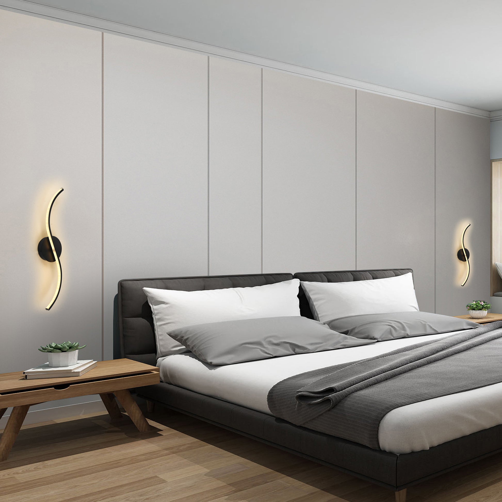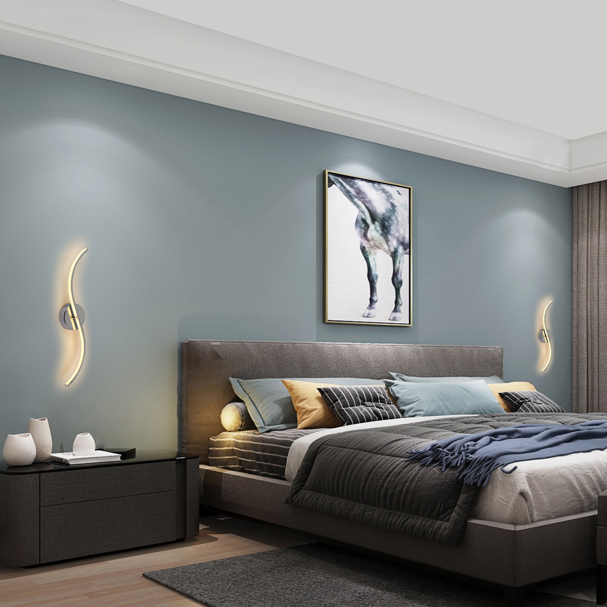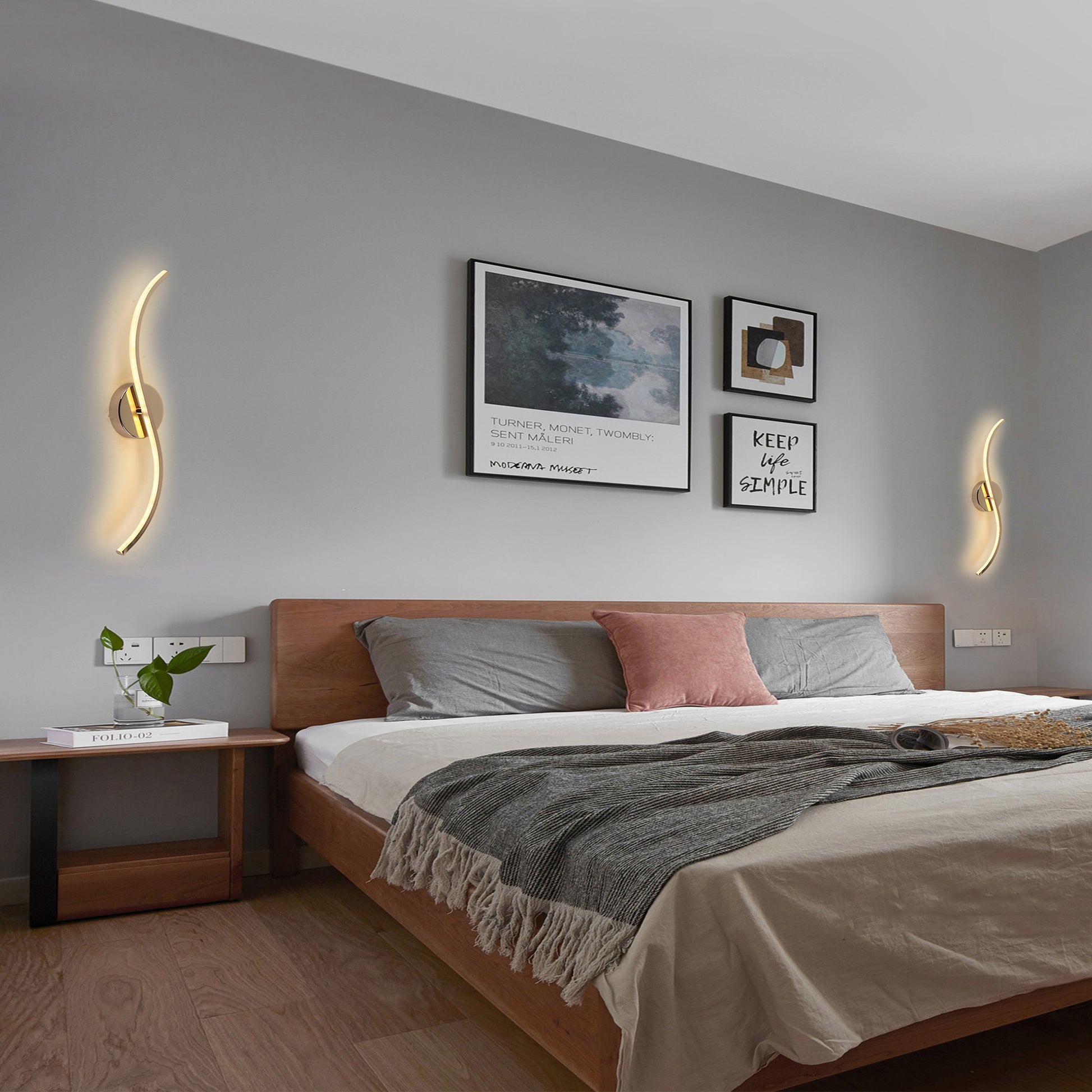 Aplique de pared LED moderno tipo arbotante con perfil semi-lineal en forma de “S”. Ideal para baños, tocadores, recámaras, espejos o bibliotecas. Disponible en acabados dorado, negro mate y cromo, combina fácilmente con cualquier estilo contemporáneo.