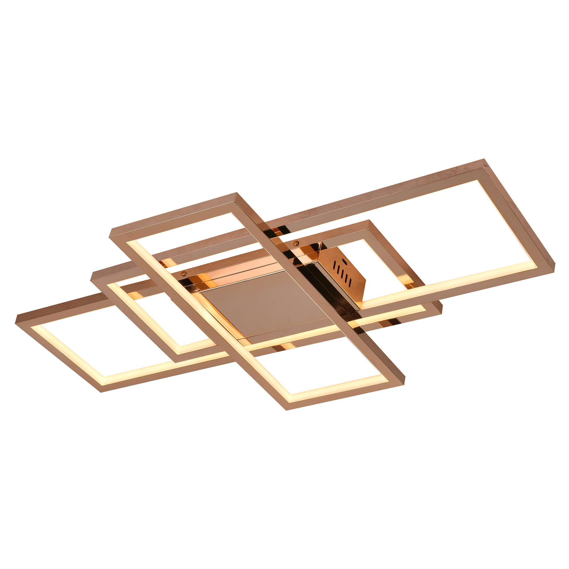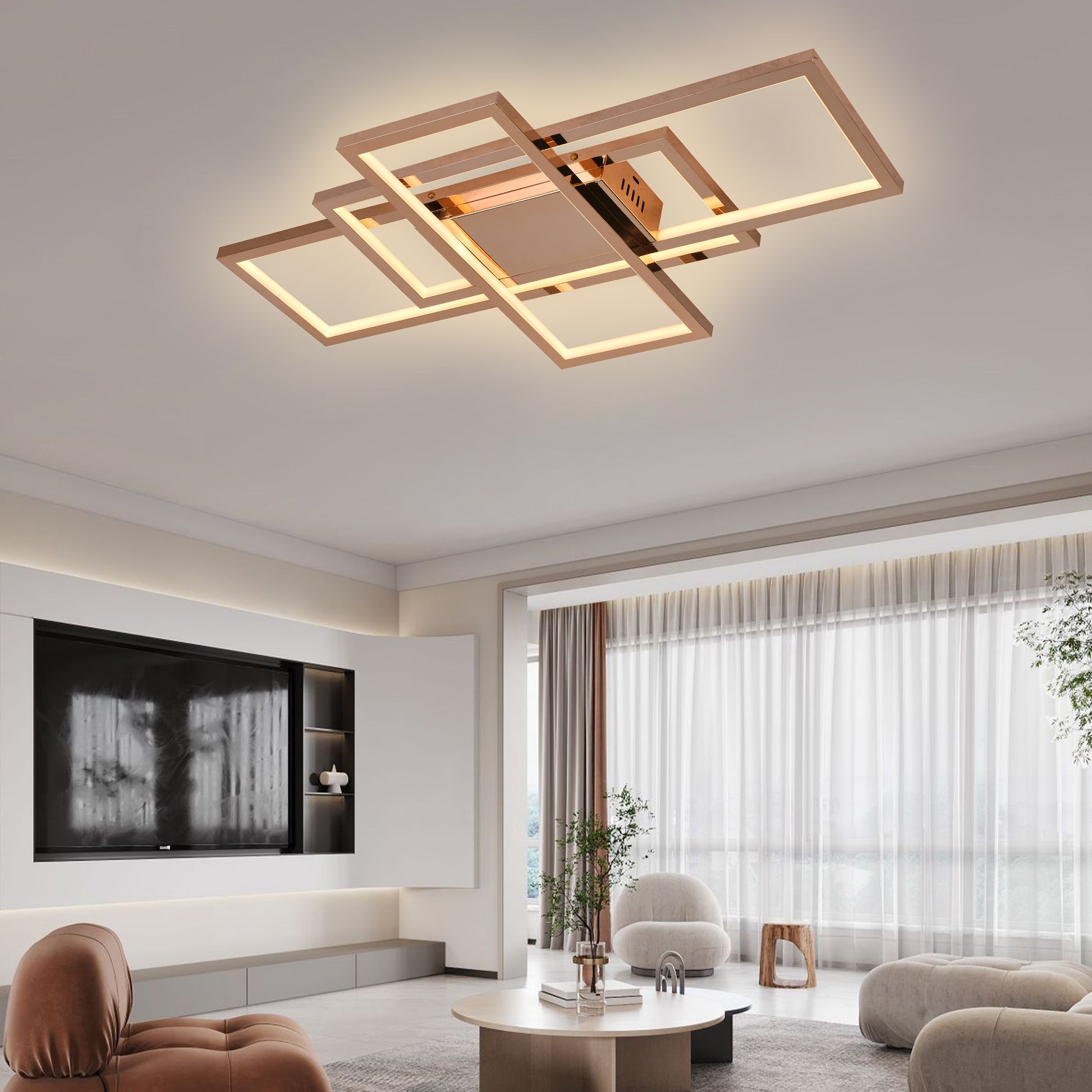 Lámpara de techo moderna con diseño rectangular formado por rectángulos entrelazados, creando un efecto visual único y llamativo. Control remoto y app para ajustar intensidad y elegir luz cálida, neutra o blanca. Perfecta para ambientes acogedores y modernos, aportando sofisticación a cualquier espacio.