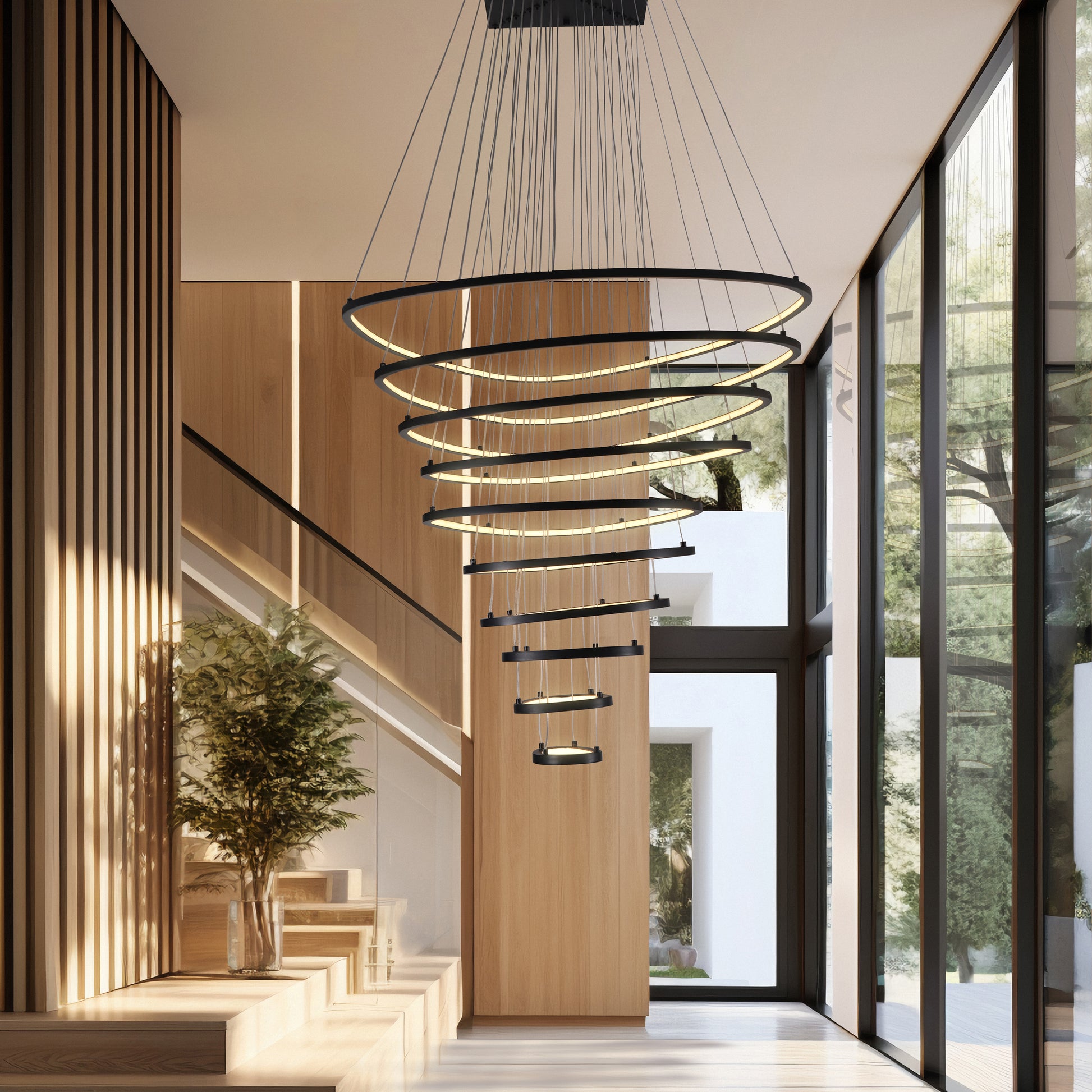 Una luminaria versátil y moderna, ideal para espacios de doble altura. Su cuerpo ondulado en forma de óvalos, combinado con acabados en aluminio y perfiles de silica gel como emisores de luz con LEDs de alta calidad, proporciona una iluminación eficiente y elegante. Los tensores ajustables permiten crear diversas configuraciones y figuras con los óvalos, ofreciendo versatilidad y estilo únicos en cualquier ambiente. La STONE / 9870 combina diseño innovador, funcionalidad y sofisticación en una sola pieza.
