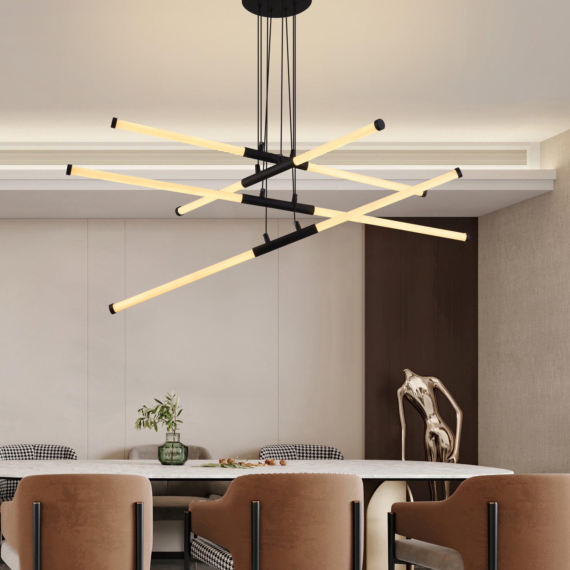 La lámpara colgante STYX / 9910 combina diseño moderno y geométrico con funcionalidad avanzada. Con cuatro perfiles rectilíneos en acabado negro mate, cada brazo sostiene dos emisores de luz con cilindros LED integrados en aluminio, creando un efecto luminoso elegante y uniforme. Ideal para comedores, cocinas, salas de estar y espacios contemporáneos, esta pieza ofrece control remoto, regulación de intensidad y temperatura de color, y tres modos de luz, brindando versatilidad y estilo a tu ambiente.