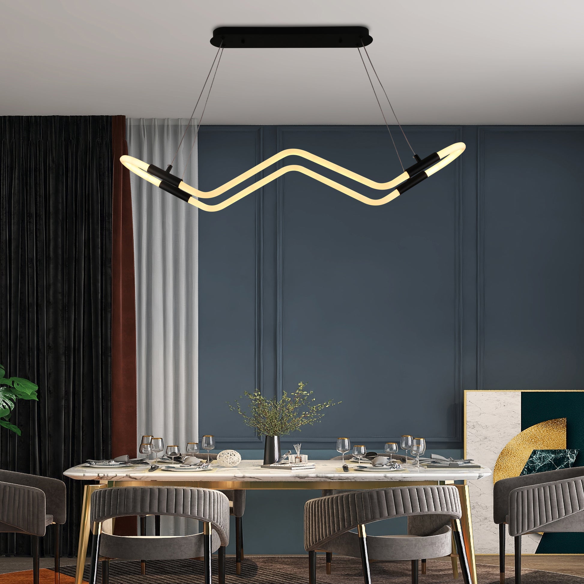 La lámpara colgante VEGGA combina diseño moderno y funcionalidad con sus perfiles abstractos en negro mate, formando una escultura de luz única. Con control remoto, regulador de intensidad y temperatura de color, esta pieza aporta estilo y elegancia a cualquier espacio mientras ilumina de manera versátil.