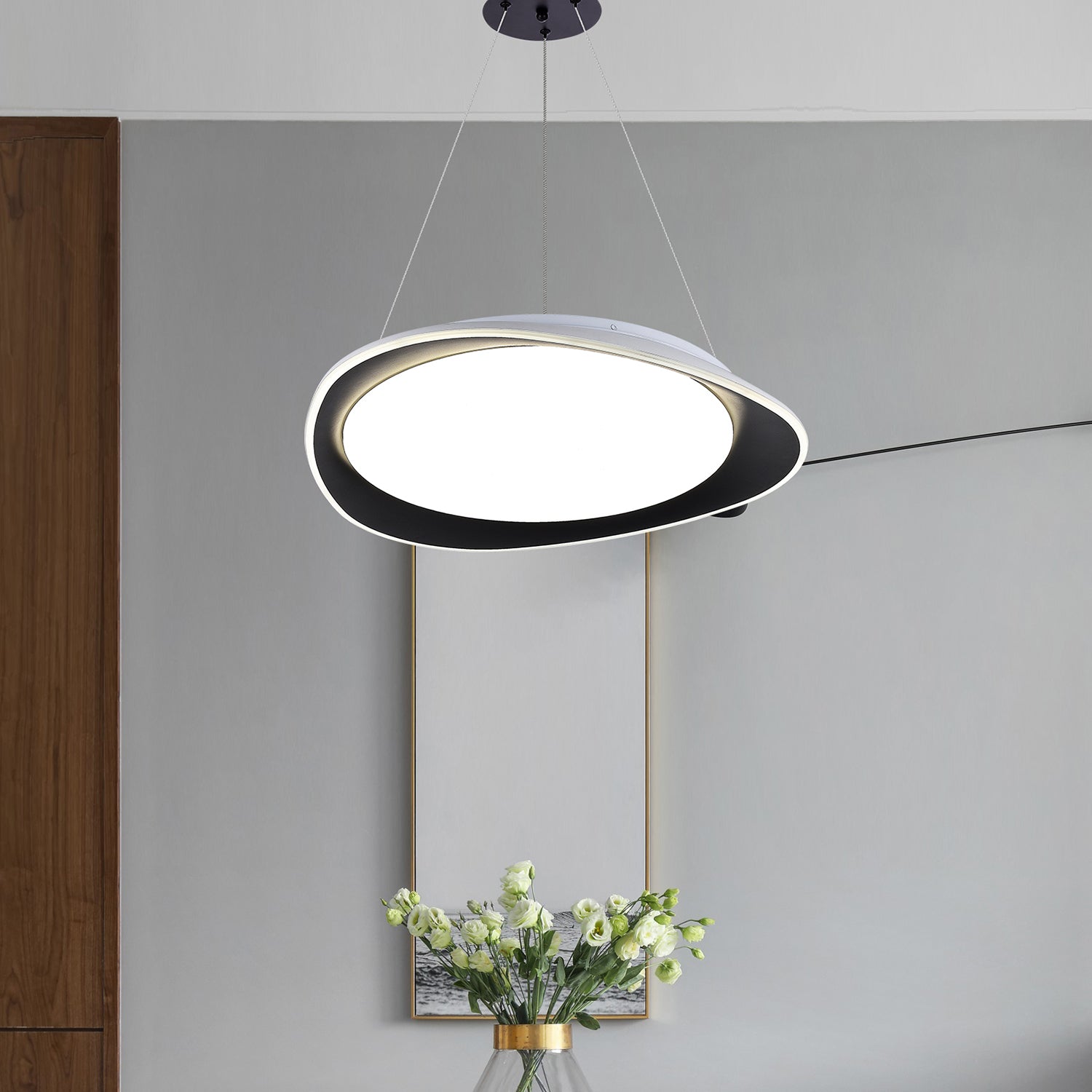 La lámpara WRAP / 9235 es una pieza de iluminación decorativa que une elegancia y modernidad en un solo diseño. Disponible en acabado blanco con negro mate, destaca por su estética minimalista y sofisticada. Inspirada en las formas cósmicas y triangulares, proyecta una luz versátil que puede adaptarse a cualquier ambiente gracias a su control por aplicación móvil y control remoto. Con opciones de luz blanca, cálida y neutra, esta luminaria transforma cualquier espacio en un entorno moderno, elegante y lleno de personalidad.
