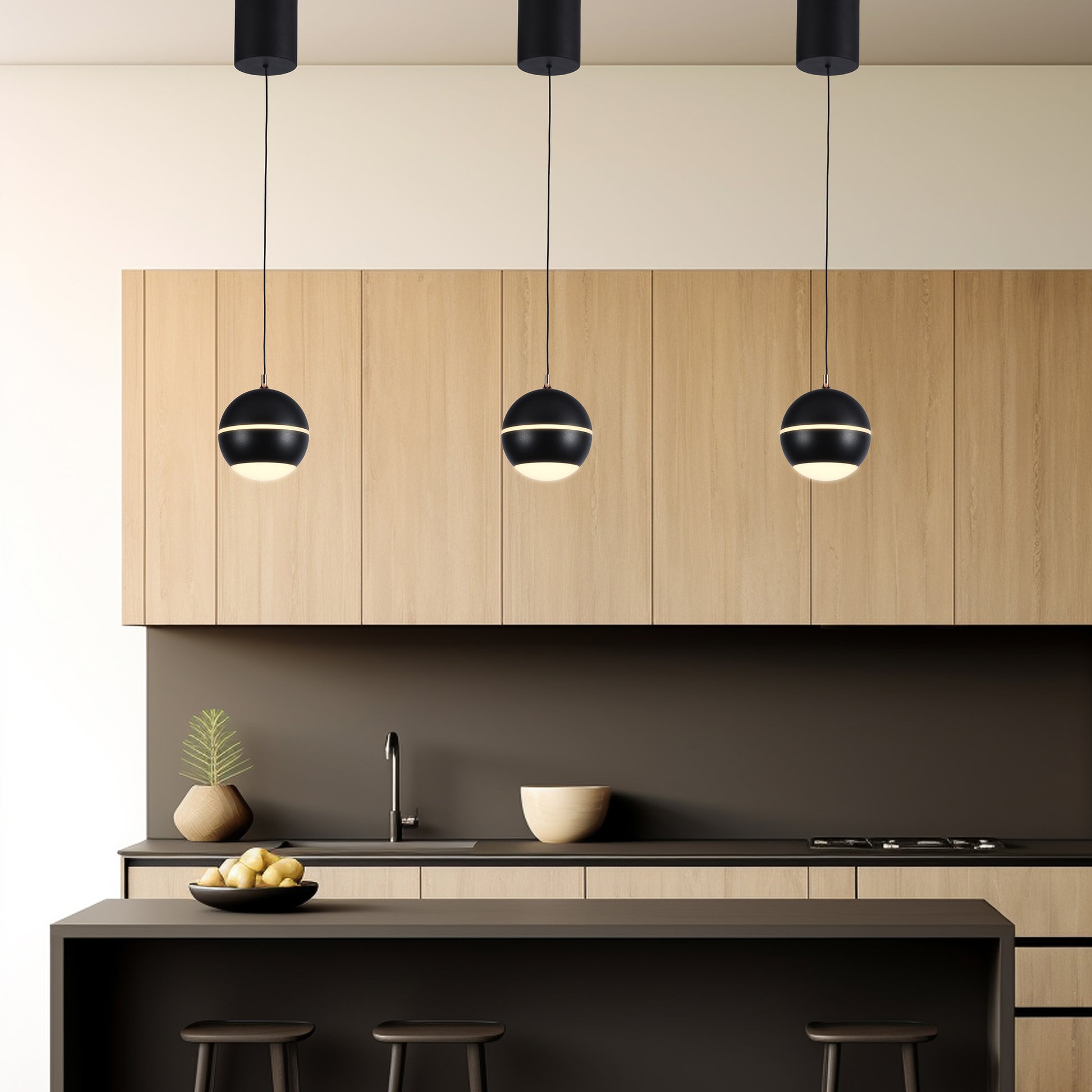 La lámpara suspendida LED Pahlla eleva cualquier espacio con su diseño moderno y elegante. Su sistema de polea permite ajustar la altura manualmente según tus necesidades. Con acabado en negro mate, ofrece luz directa a través de su difusor opalino e indirecta mediante el filo de su cuerpo, perfecta para resaltar áreas luminosas de manera sofisticada. Inspirada en planetas intergalácticos, su forma única aporta un toque llamativo y exclusivo a tu decoración.